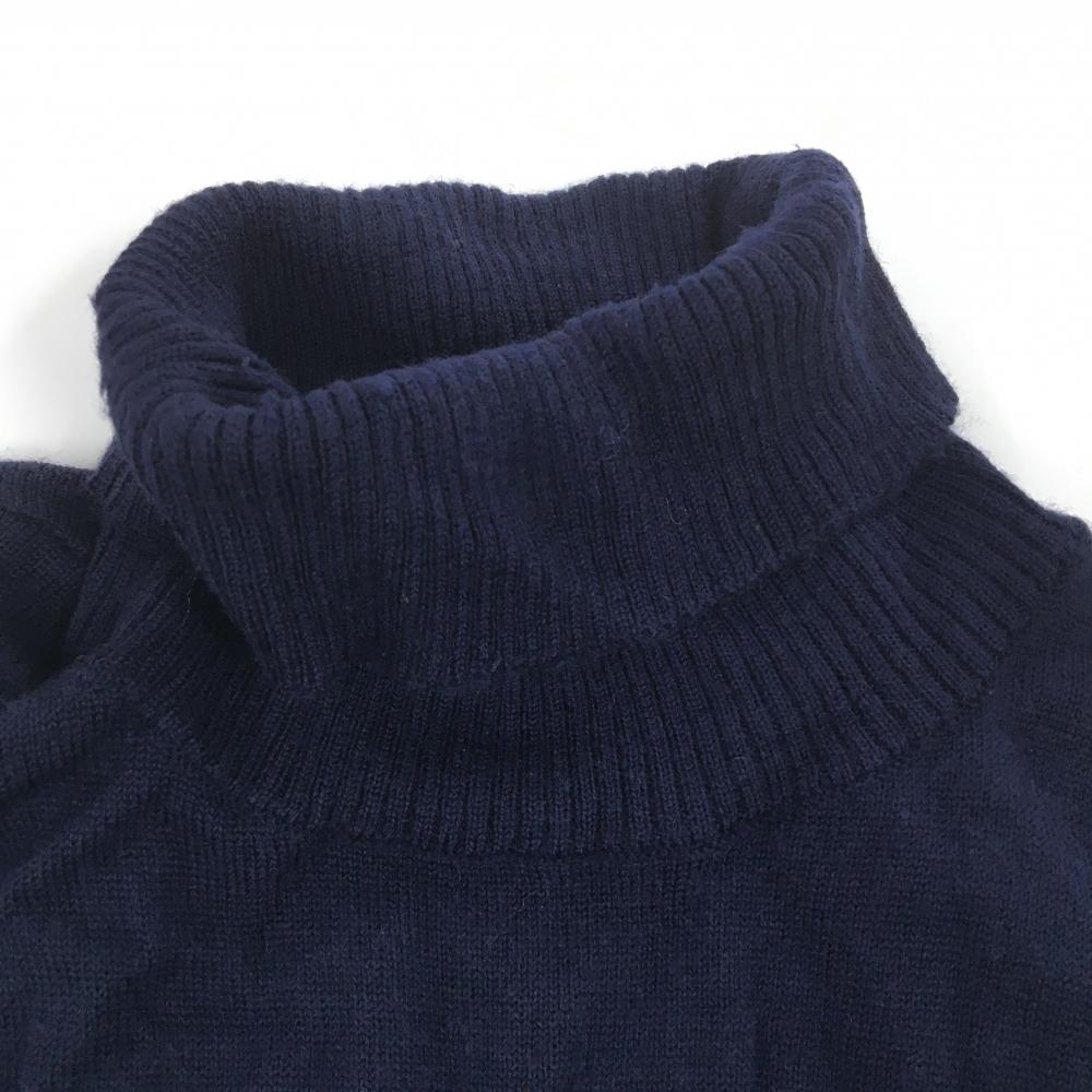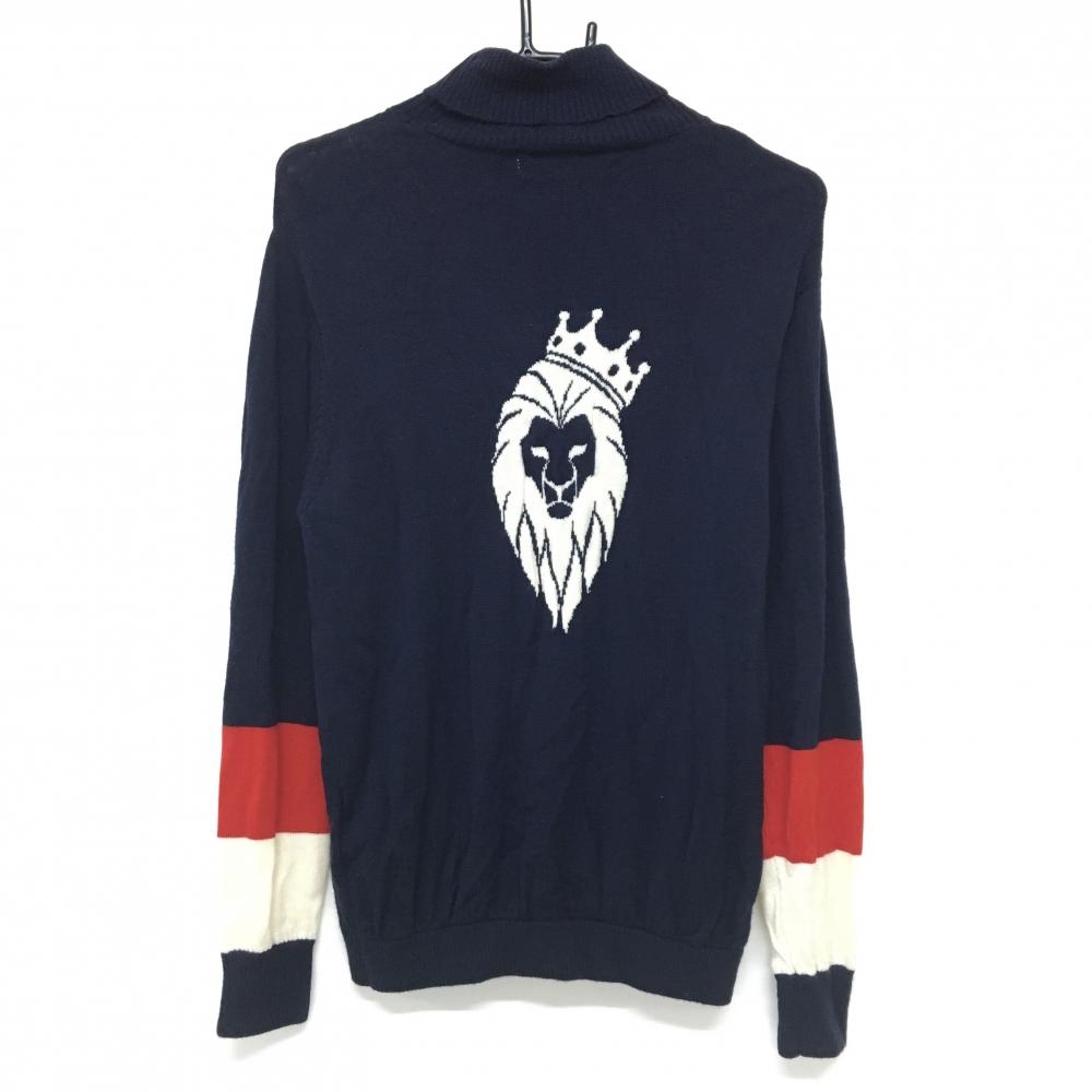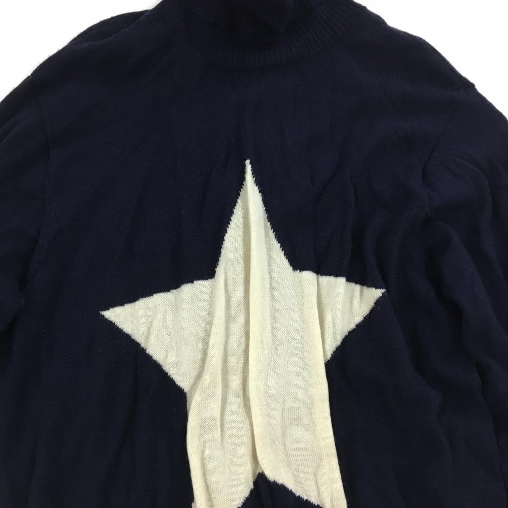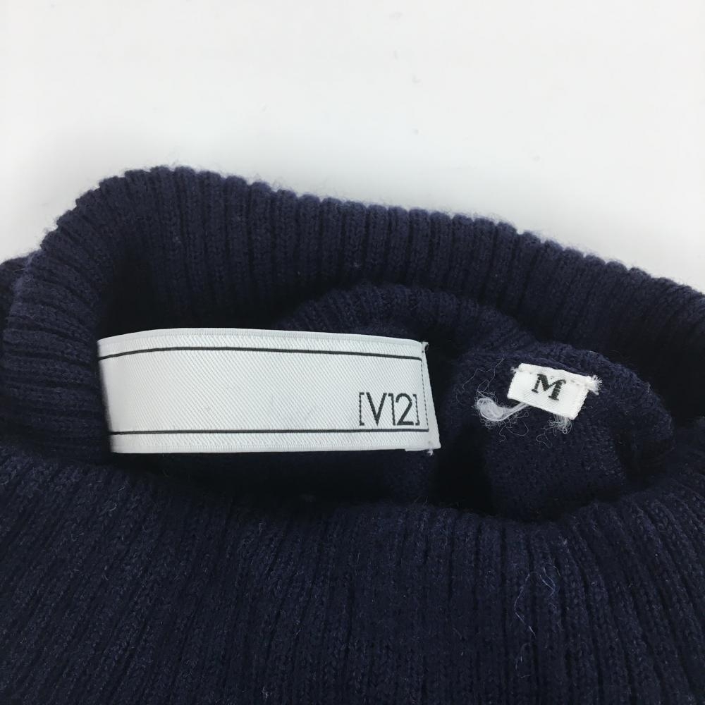 V12 タートルネックセーター ネイビー×白 フロントロゴ 背面星 ウール100% ニット メンズ M ゴルフウェア V12