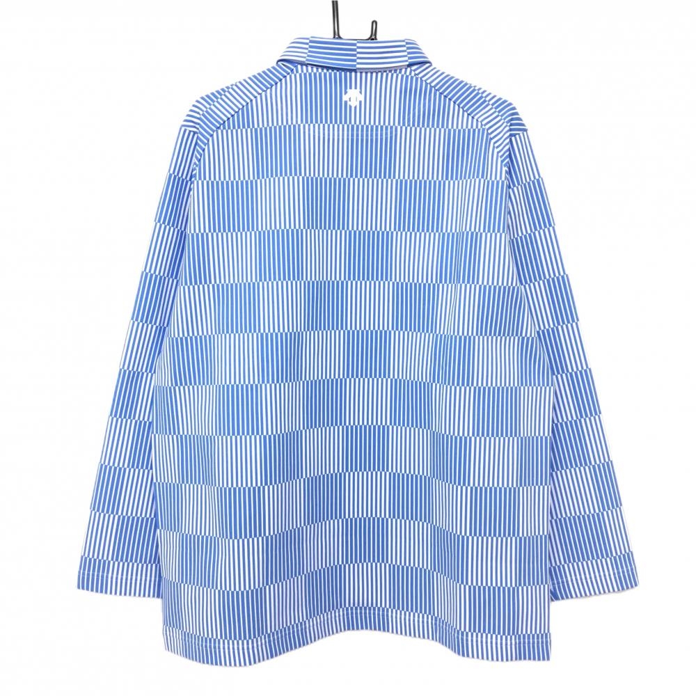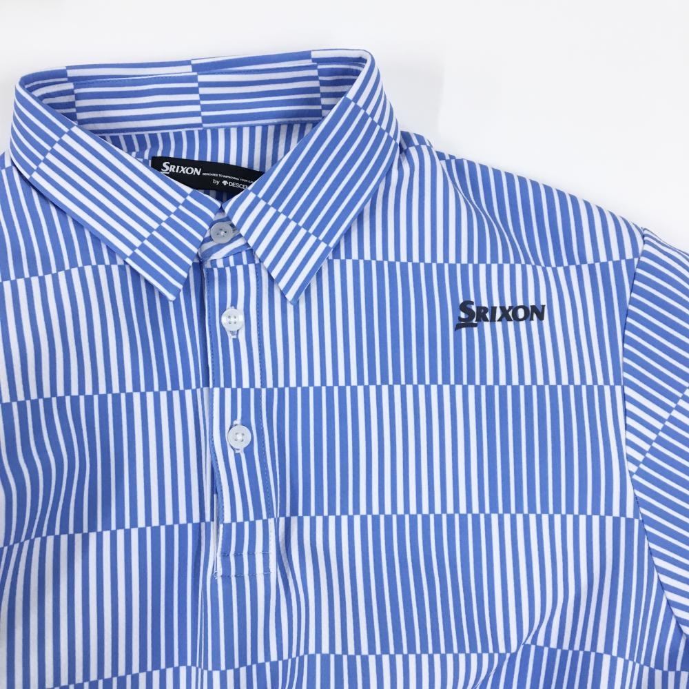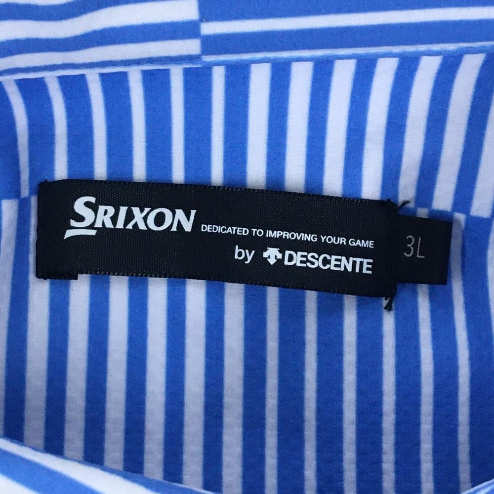 【超美品】スリクソンバイデサント 長袖ポロシャツ 白×ブルー ストライプ調 ロゴ メンズ 3L ゴルフウェア 大きいサイズ SRIXON