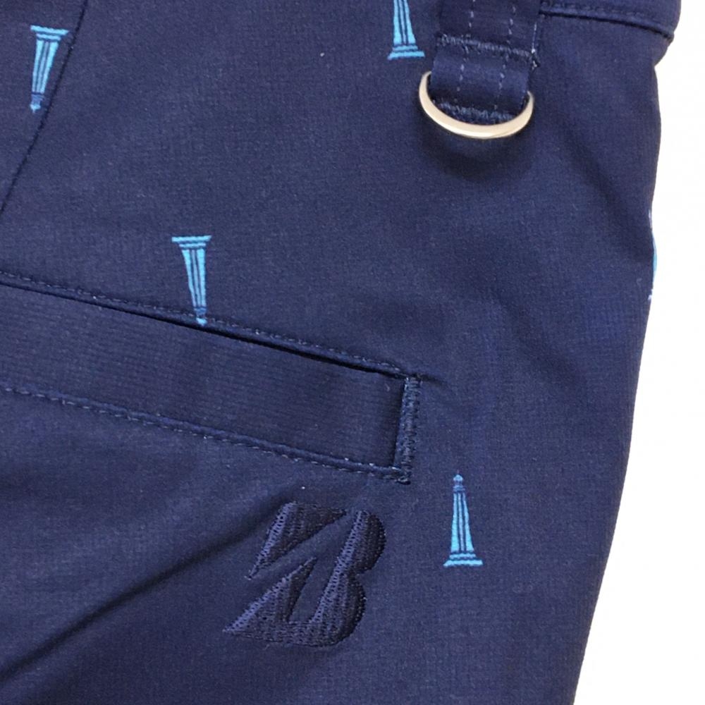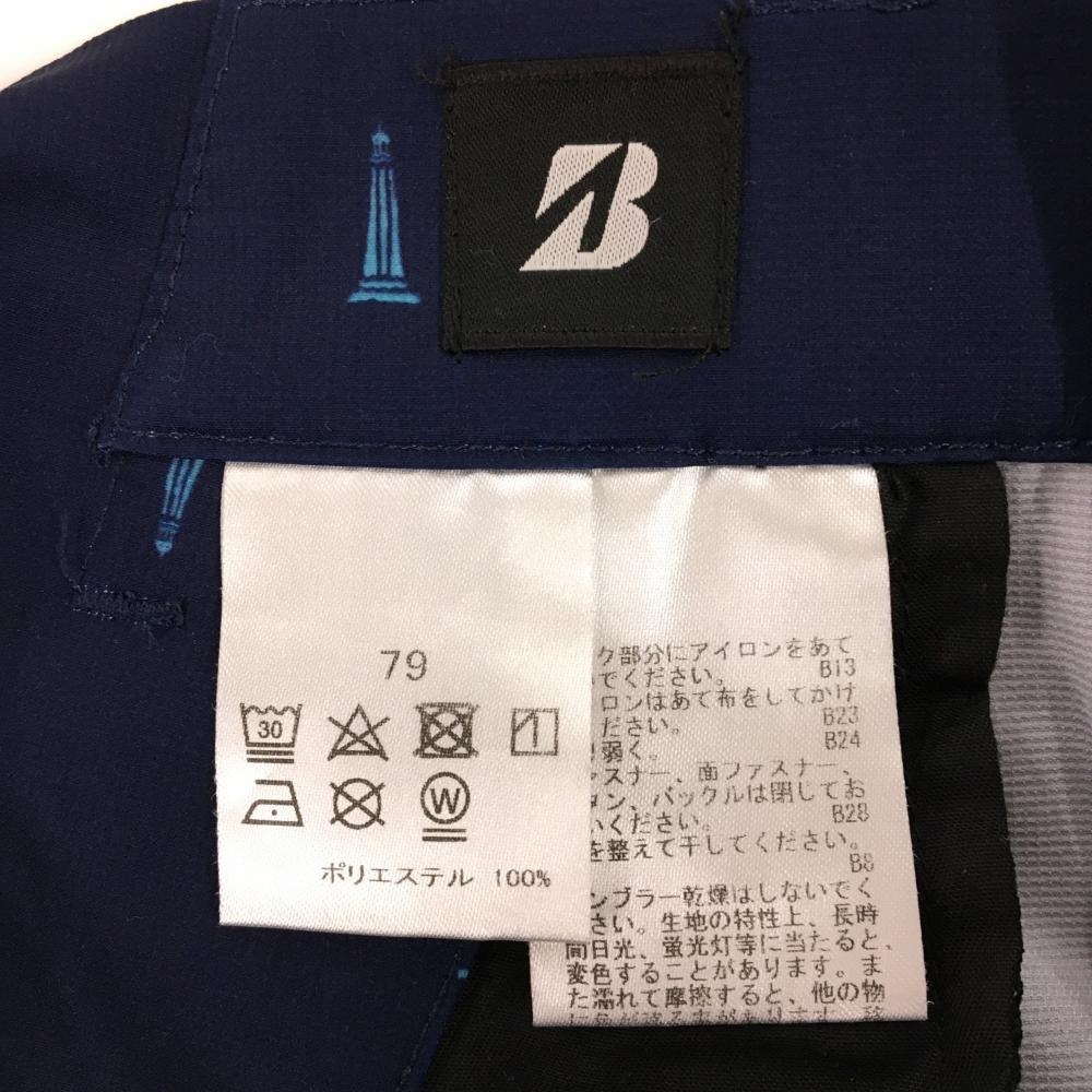 【美品】ブリヂストン パンツ ネイビー×ライトブルー 総柄 ストレッチ メンズ 79 ゴルフウェア Bridgestone