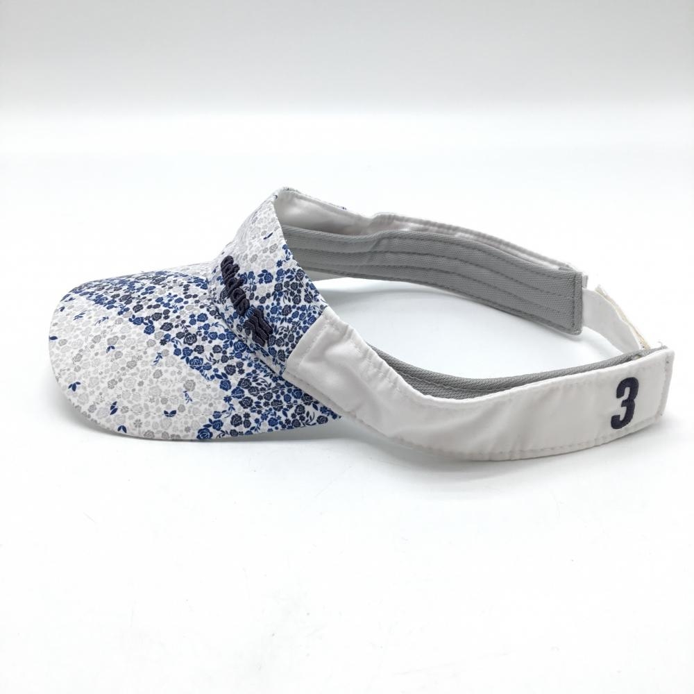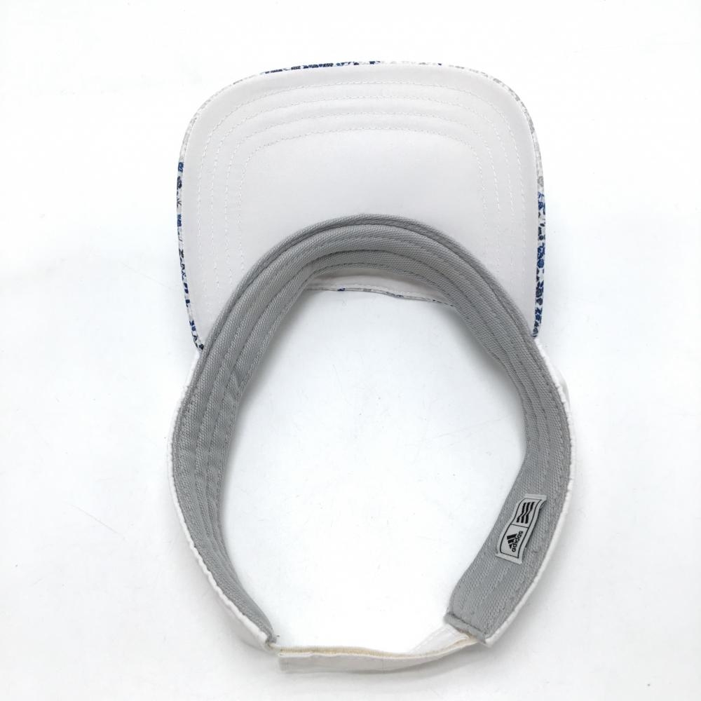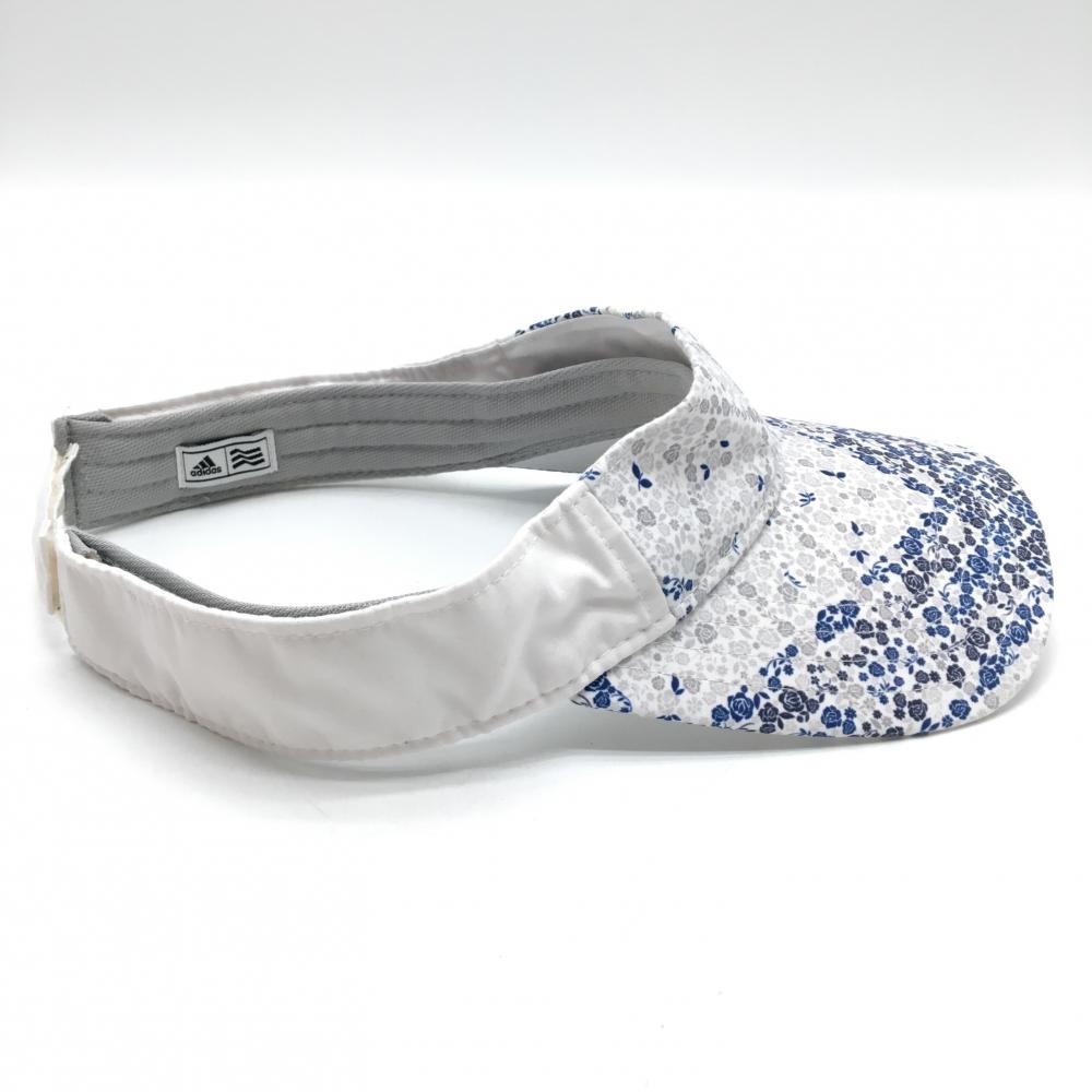 【美品】アディダス サンバイザー 白×ネイビー×グレー 花柄 フリーサイズ(56-58cm) ゴルフウェア adidas