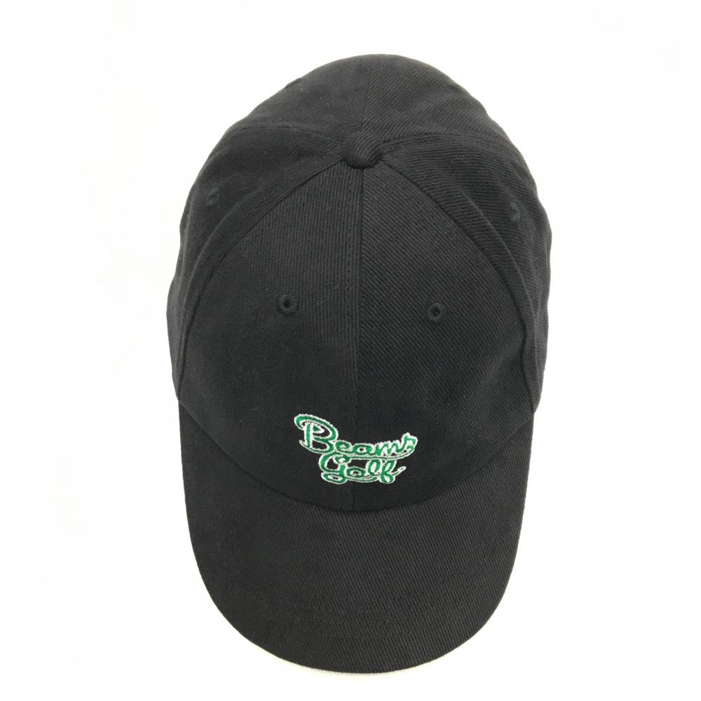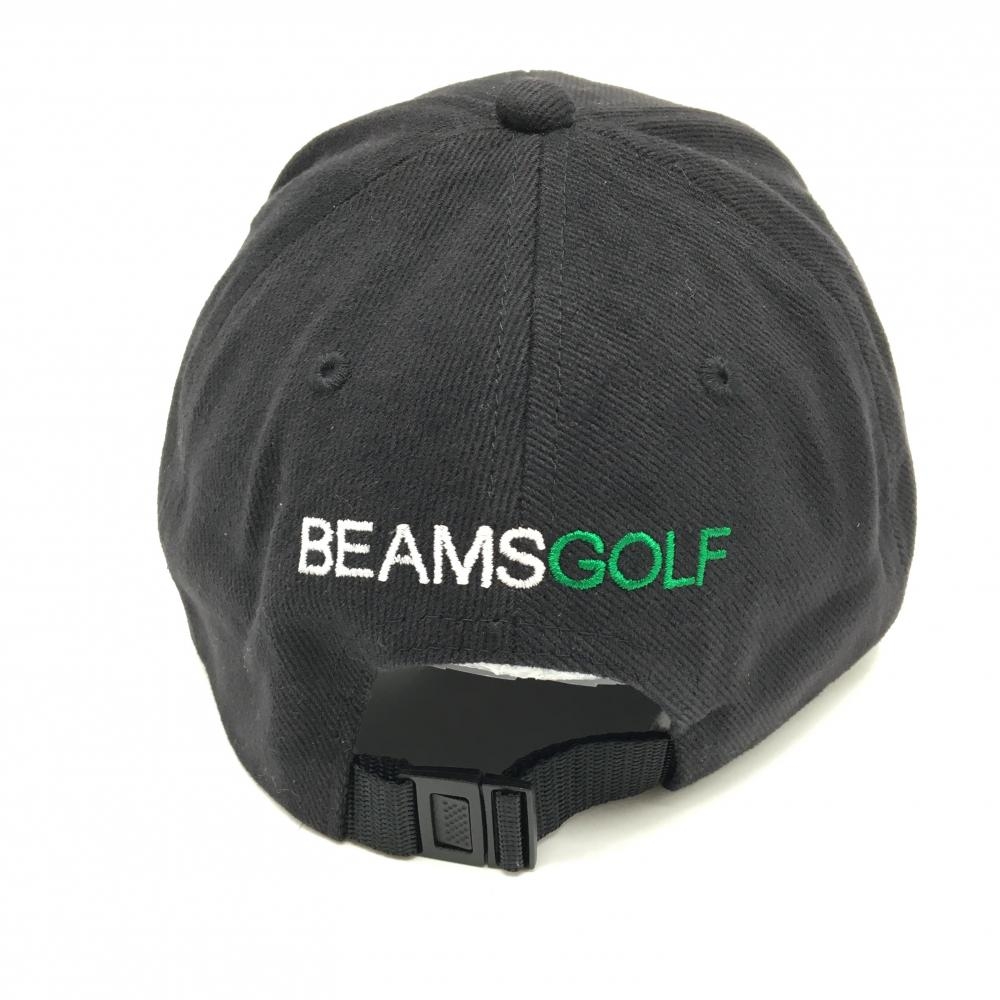 ビームスゴルフ コーデュロイキャップ 黒×グリーン ロゴ刺しゅう ゴルフウェア BEAMS GOLF