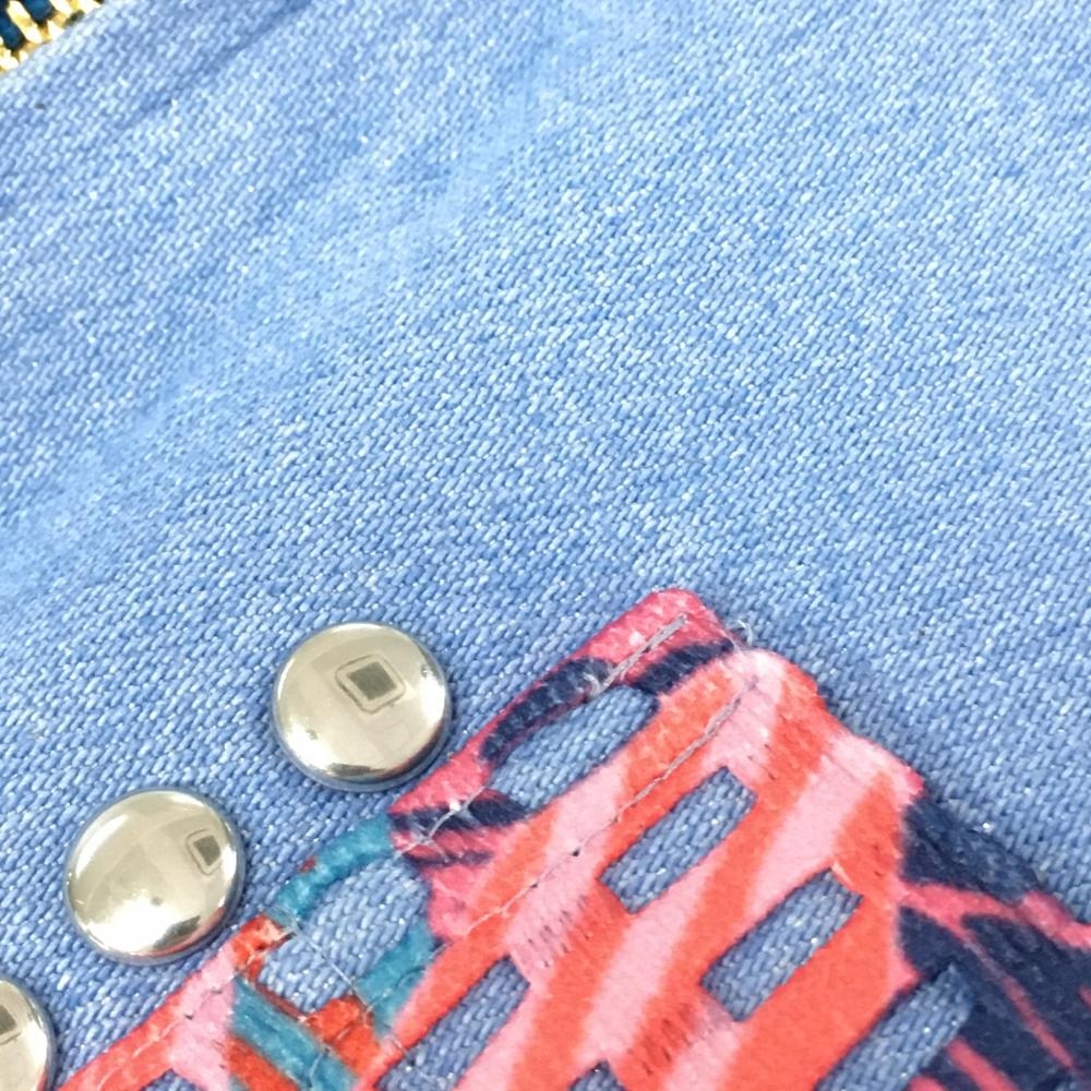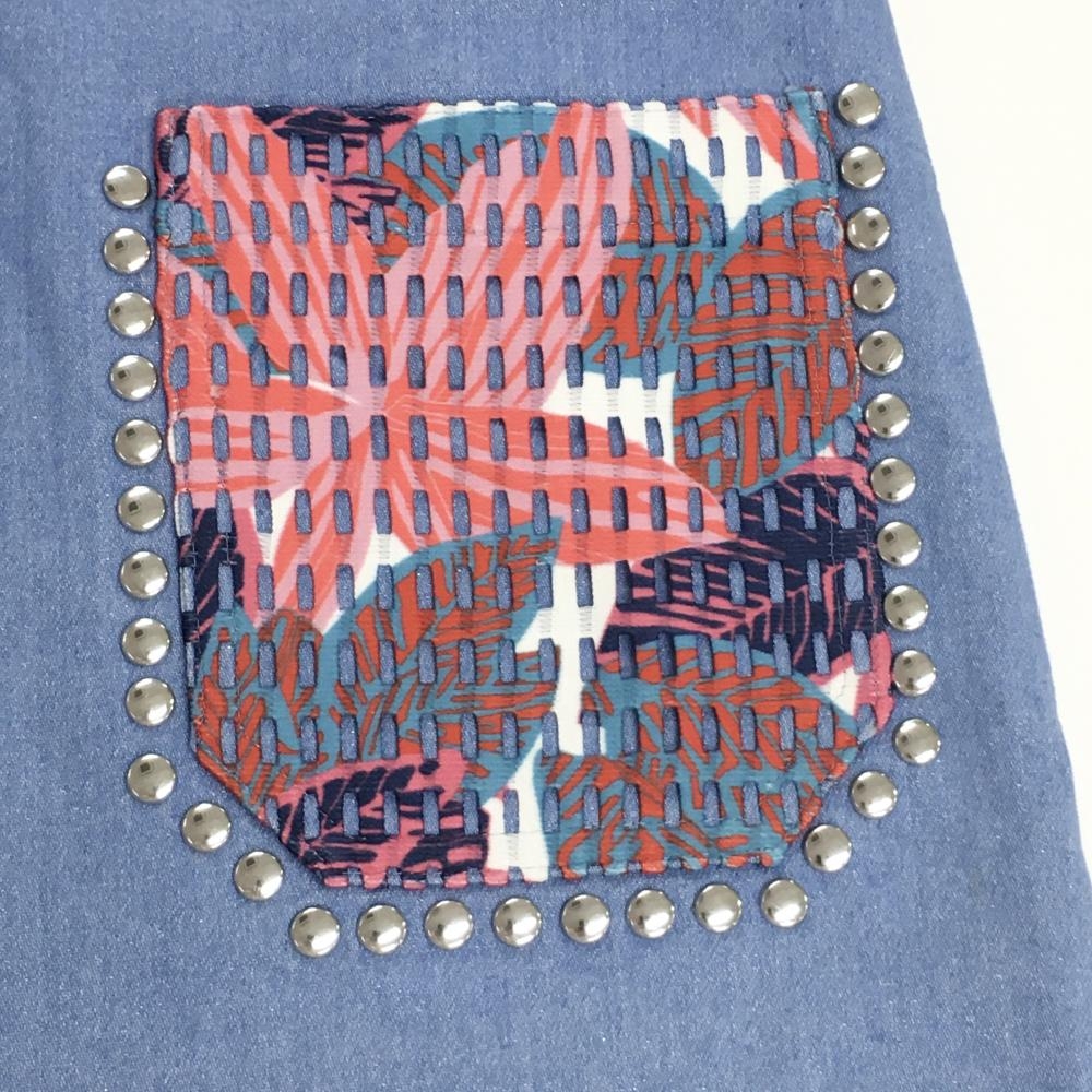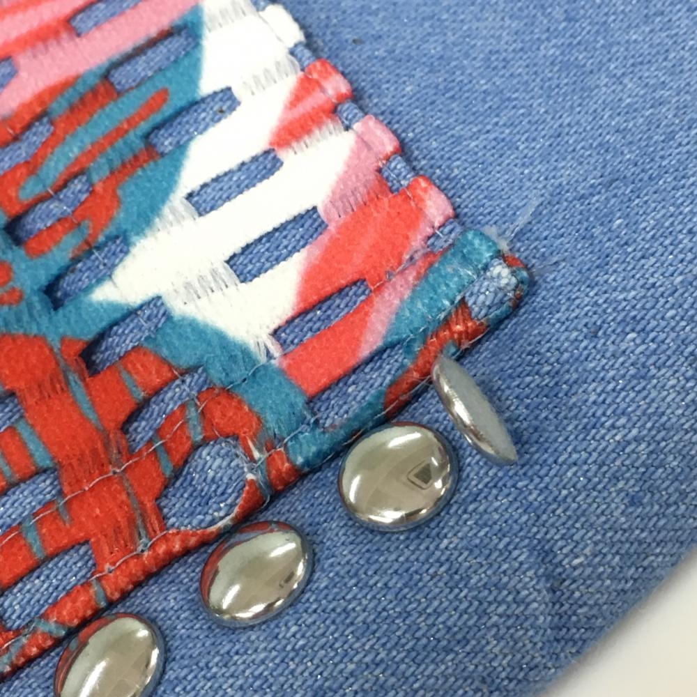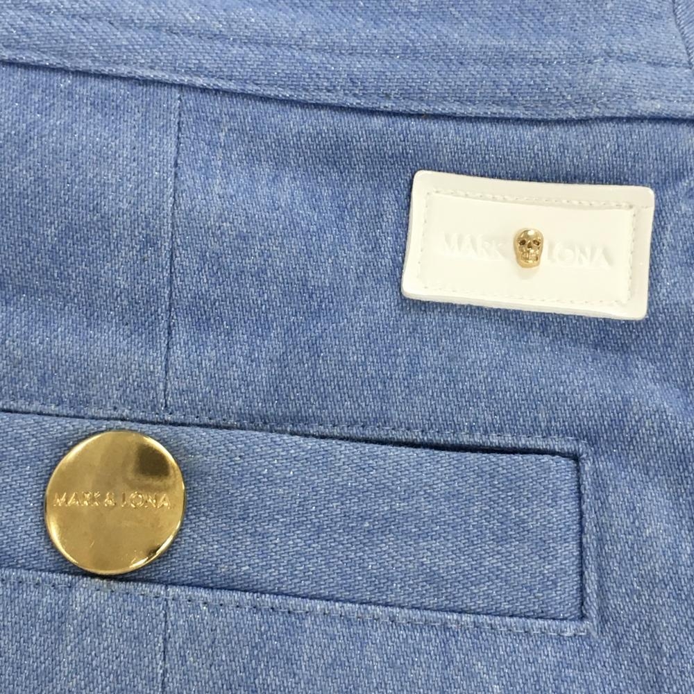 【美品】マークアンドロナ スカート ライトブルー×レッド系 フロントジップ レディース M ゴルフウェア MARK&LONA