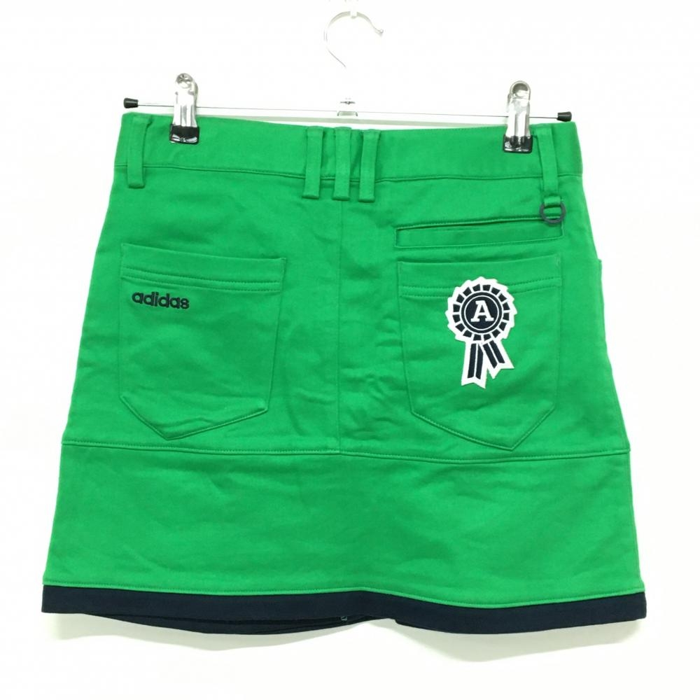 【美品】アディダス スカート グリーン×ネイビー ポケットロゴ刺しゅう レディース S/P ゴルフウェア adidas
