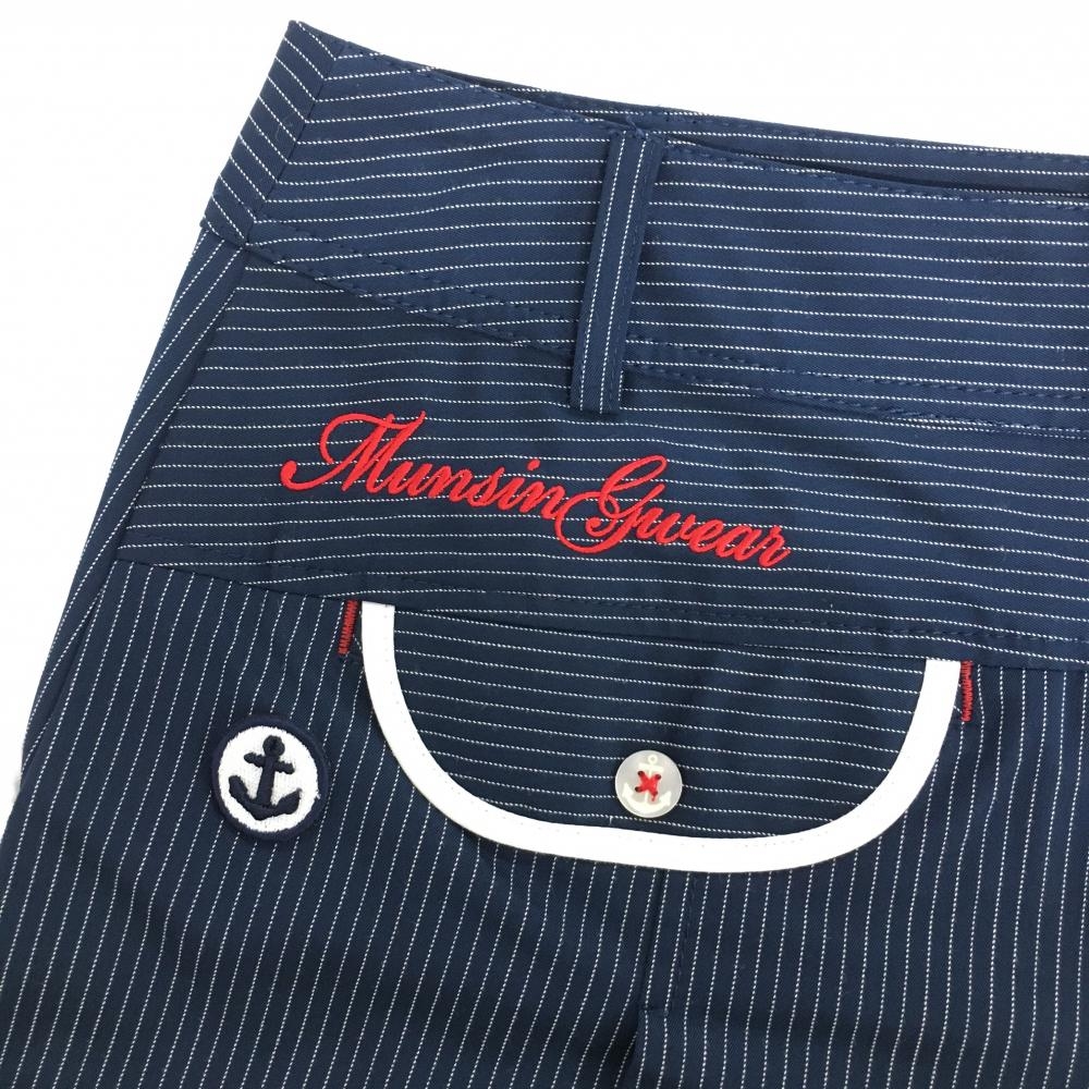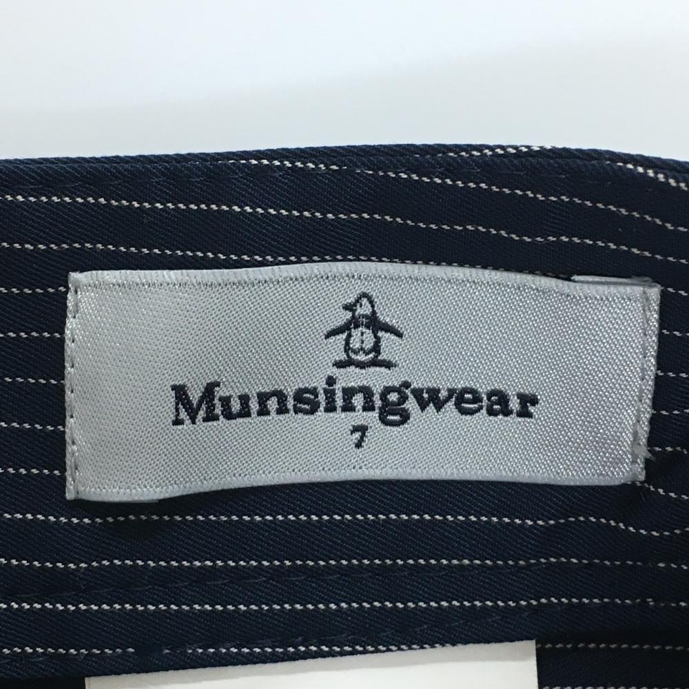 【美品】マンシングウェア キュロットスカート ネイビー×白 細ストライプ レディース 7 ゴルフウェア Munsingwear