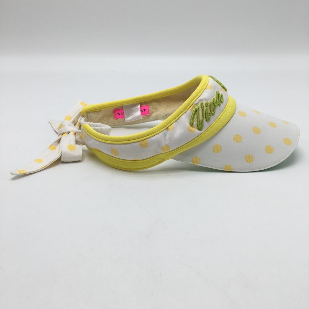ビバハート サンバイザー 白×イエロー ドット柄 後ろリボン レディース ゴルフウェア VIVA HEART