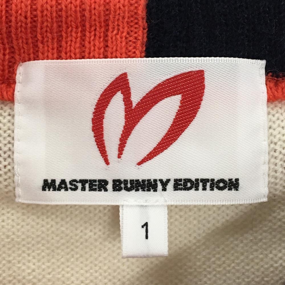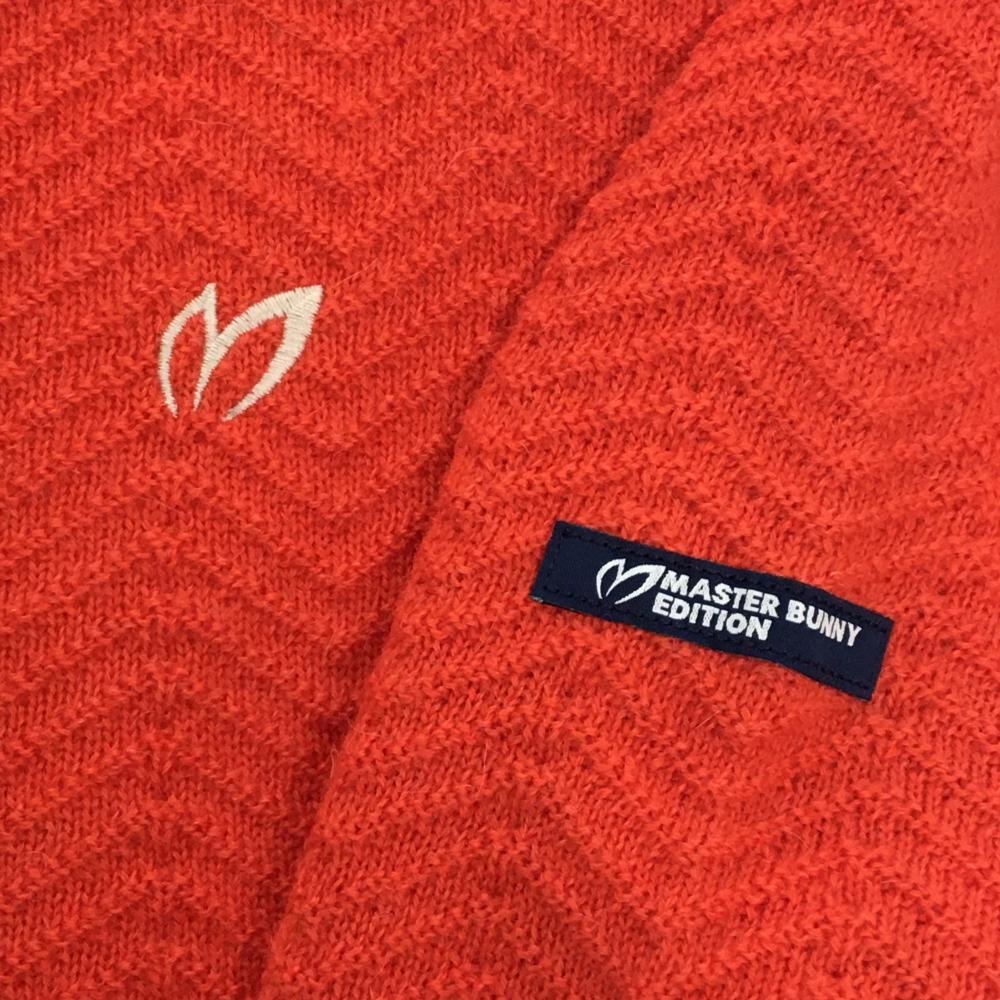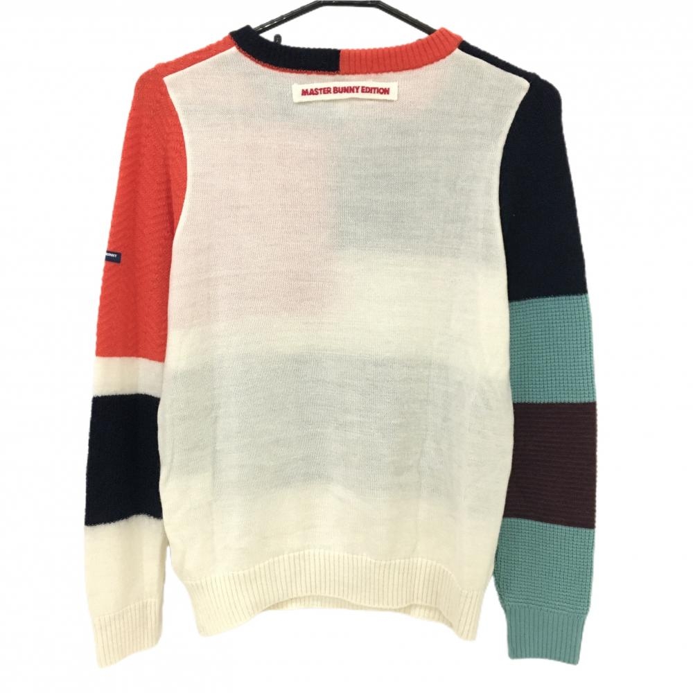 【超美品】マスターバニー セーター レッド系×ネイビー×白 ニット 羊毛・モヘヤ混 レディース 1(M) ゴルフウェア MASTER BUNNY EDITION