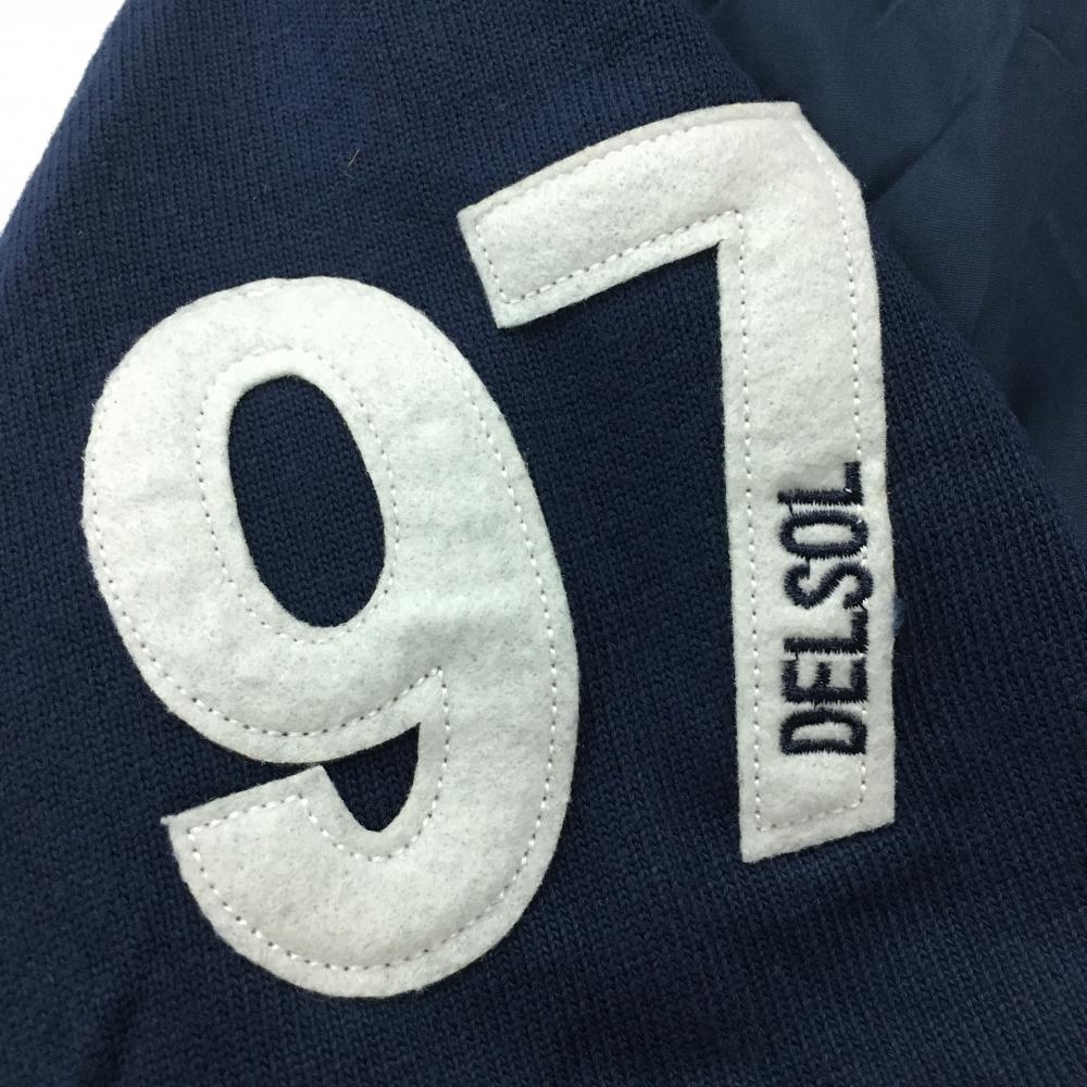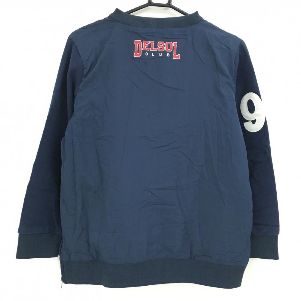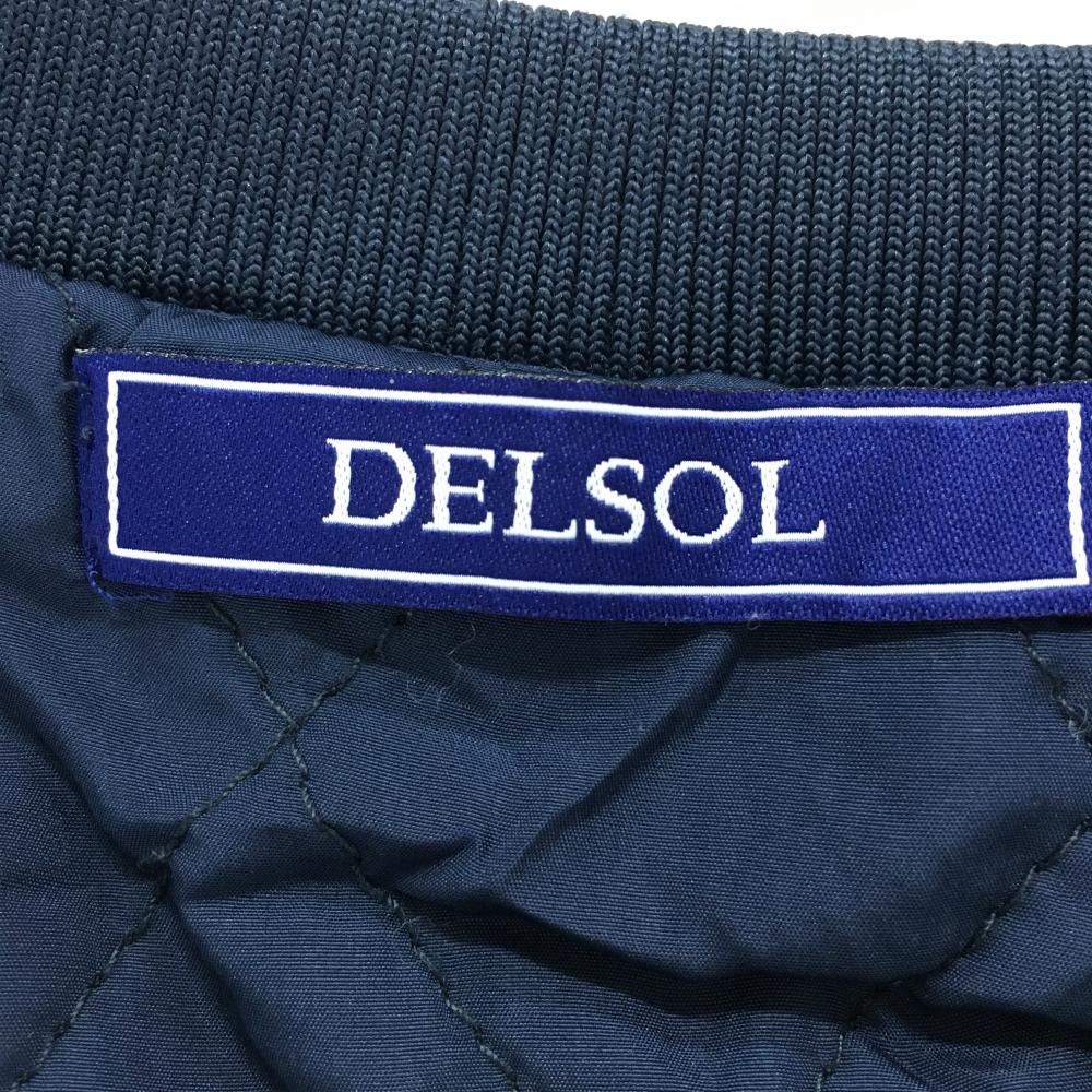 【美品】デルソル 中綿切替スニード ネイビー×白 胸元ワッペン 袖ニット地 ブルゾン Vネック レディース L ゴルフウェア DELSOL