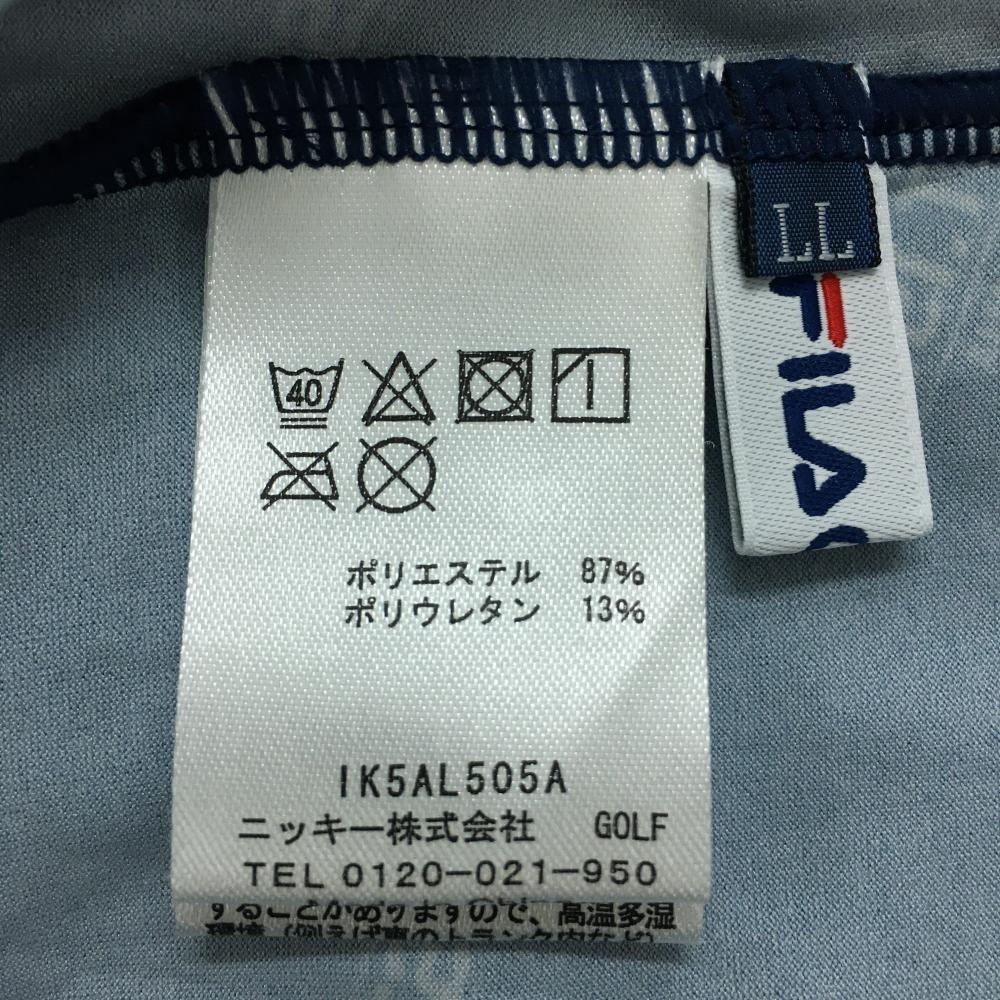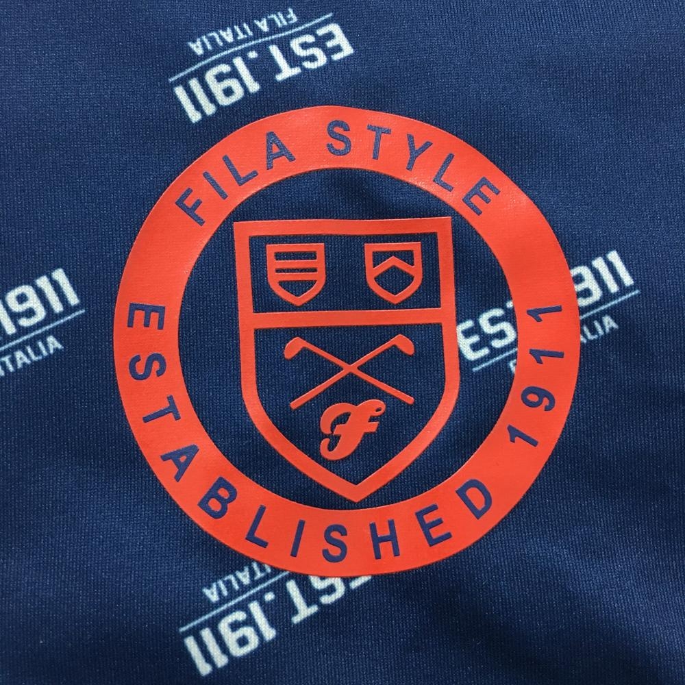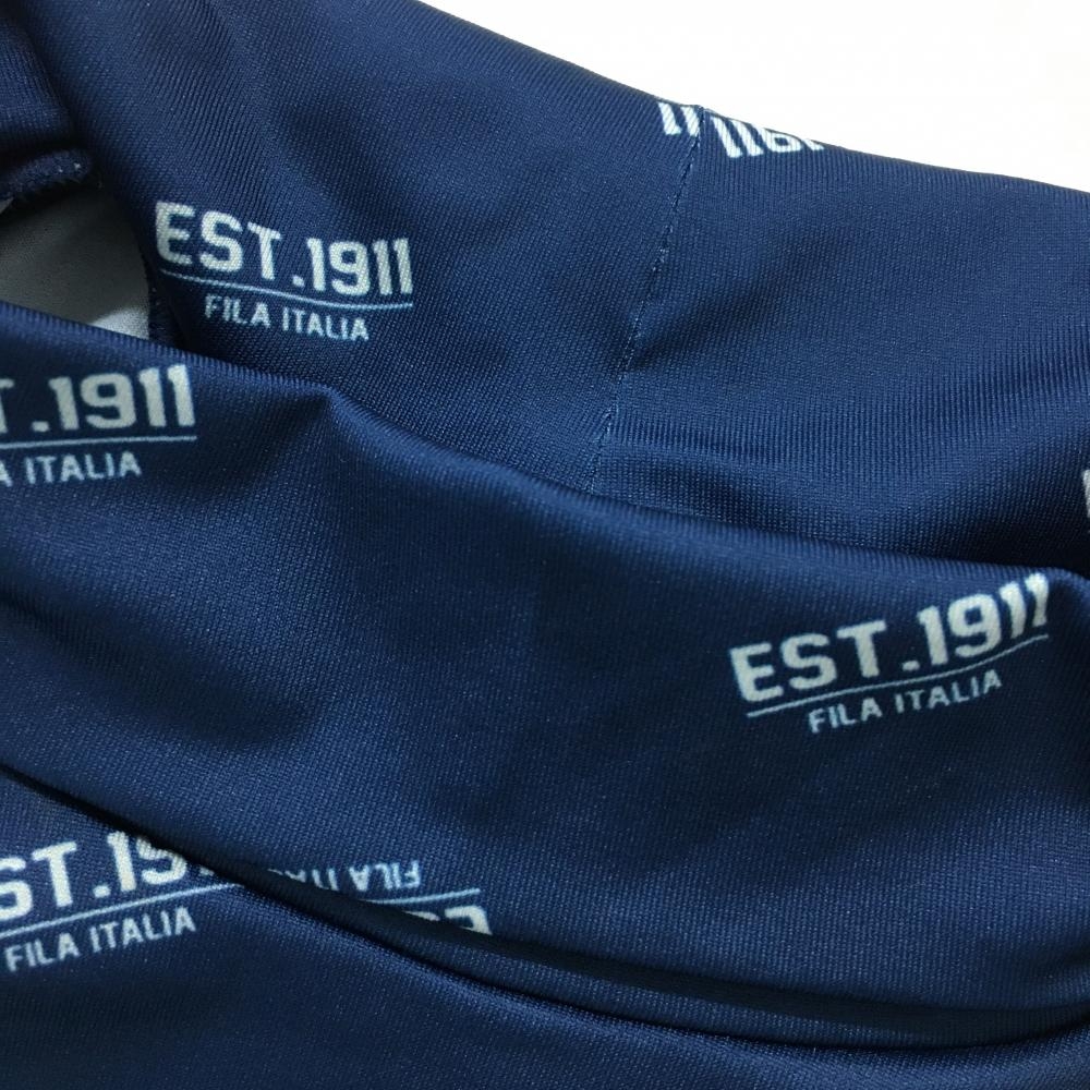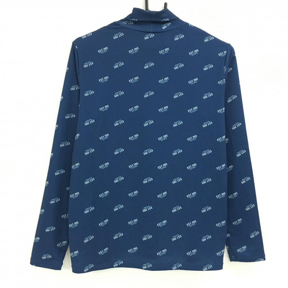 【美品】フィラゴルフ 長袖ハイネックシャツ ネイビー×白 総柄 ロゴプリント インナー レディース LL ゴルフウェア FILA GOLF