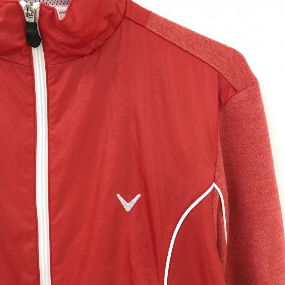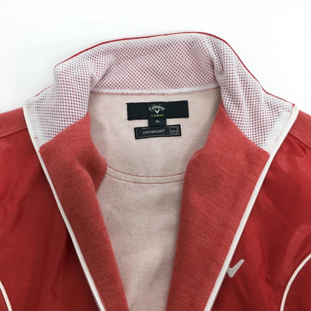 【美品】キャロウェイ 切替ジャケット レッド 前身頃地模様 ロゴ白 ダブルジップ メンズ M ゴルフウェア Callaway