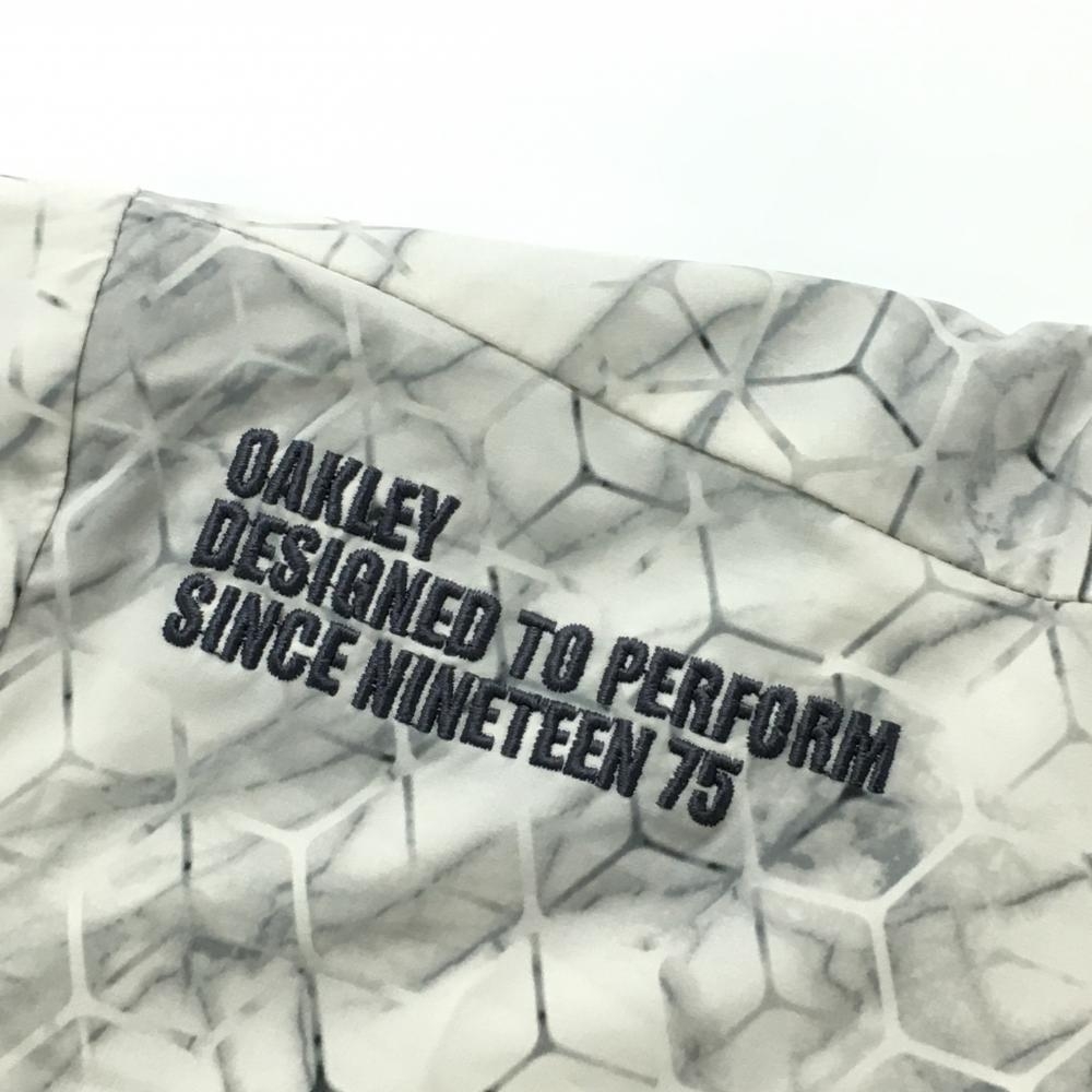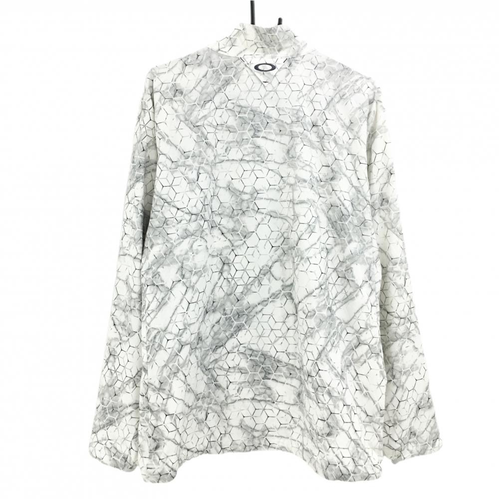 【美品】オークリー ジャケット アイボリー×グレー 総柄 ヘキサゴン ハイネック メンズ XL ゴルフウェア Oakley
