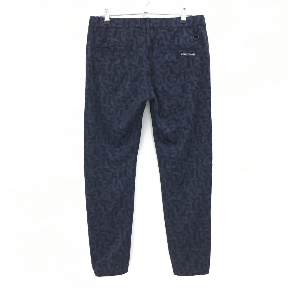 【超美品】パーリーゲイツ パンツ ネイビー×黒 ロゴ総柄 ウエスト調整紐 メンズ 6(XL) ゴルフウェア 2024年モデル PEARLY GATES