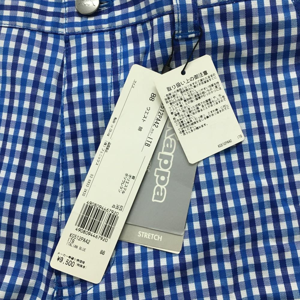 【新品】カッパ パンツ ブルー×白 チェック 裾未処理 メンズ 88 ゴルフウェア Kappa