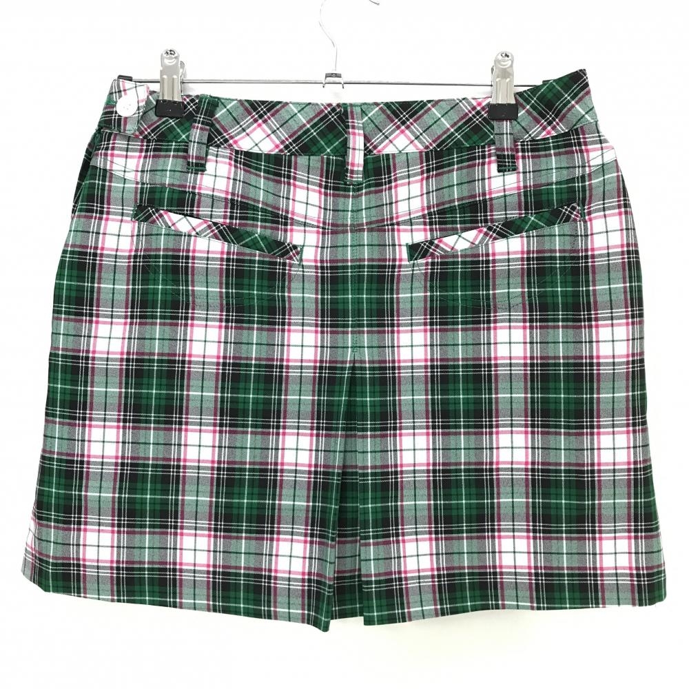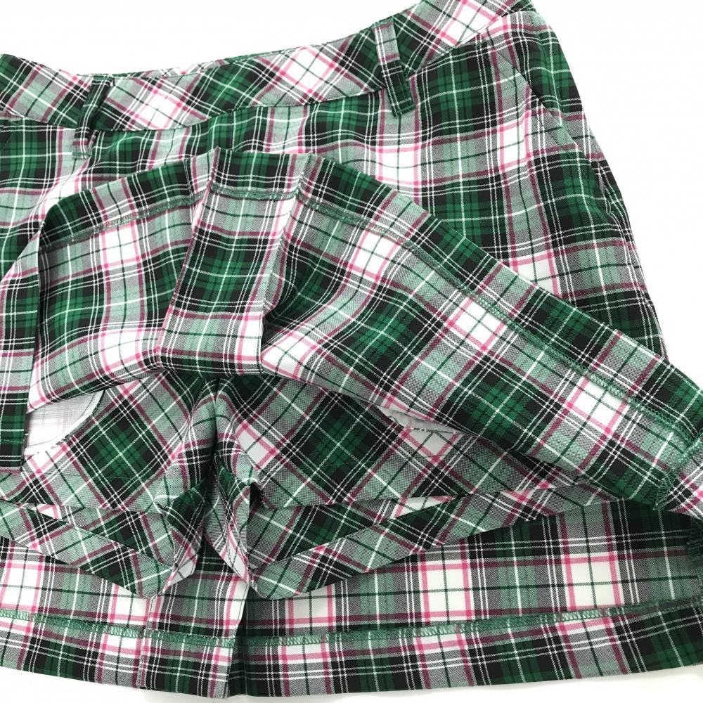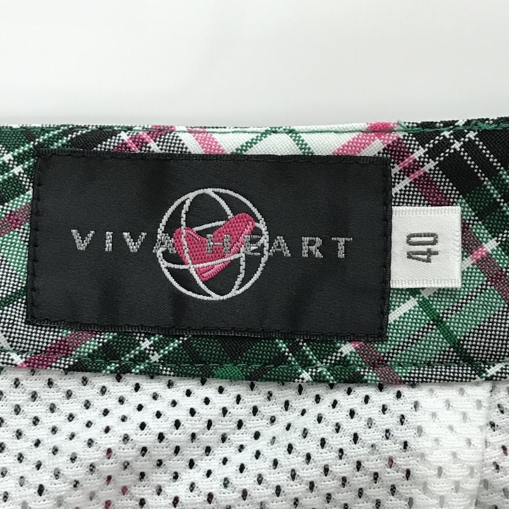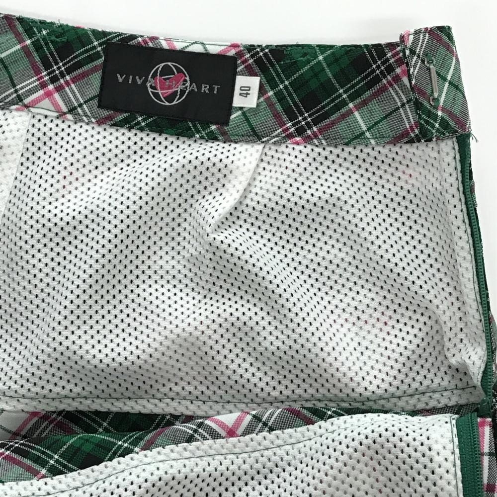 【超美品】ビバハート スカート グリーン×ピンク チェック柄 内側インナーパンツ レディース 40(M) ゴルフウェア VIVA HEART