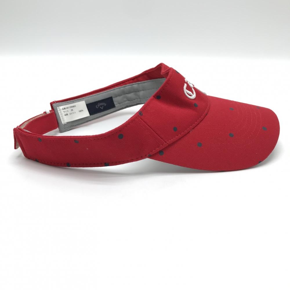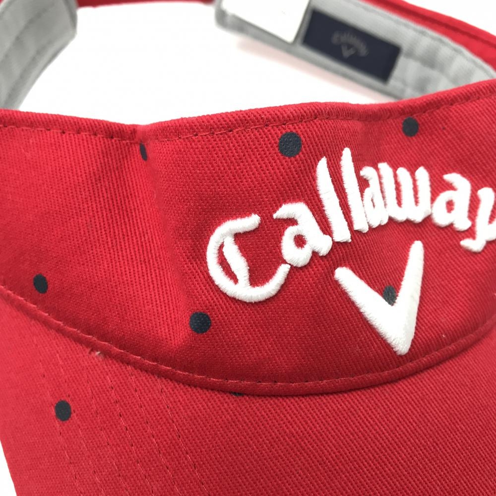 【美品】キャロウェイ サンバイザー レッド×グレー ドット 立体ロゴ FR ゴルフウェア Callaway