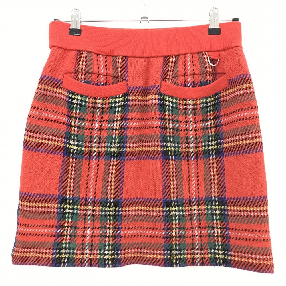 【超美品】キャロウェイ ニットスカート レッド×ブルー×グリーン チェック ウール混 ウエストゴム レディース LL ゴルフウェア Callaway