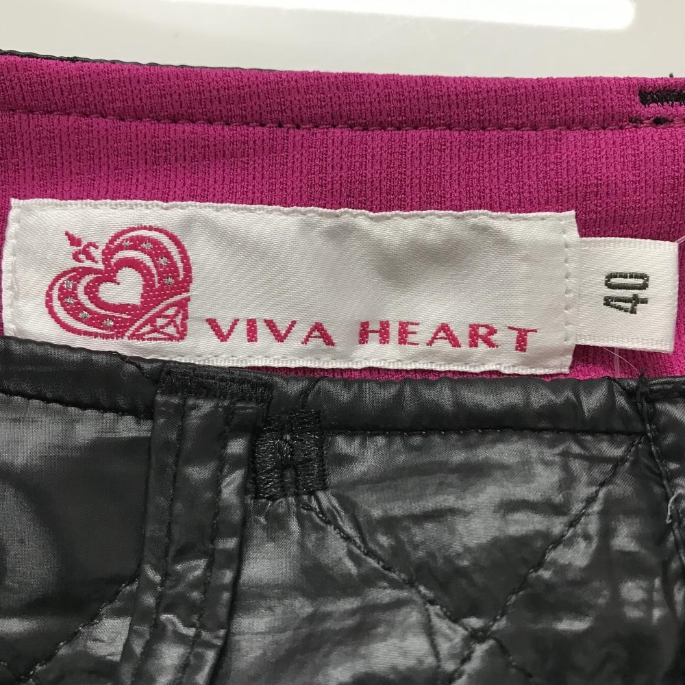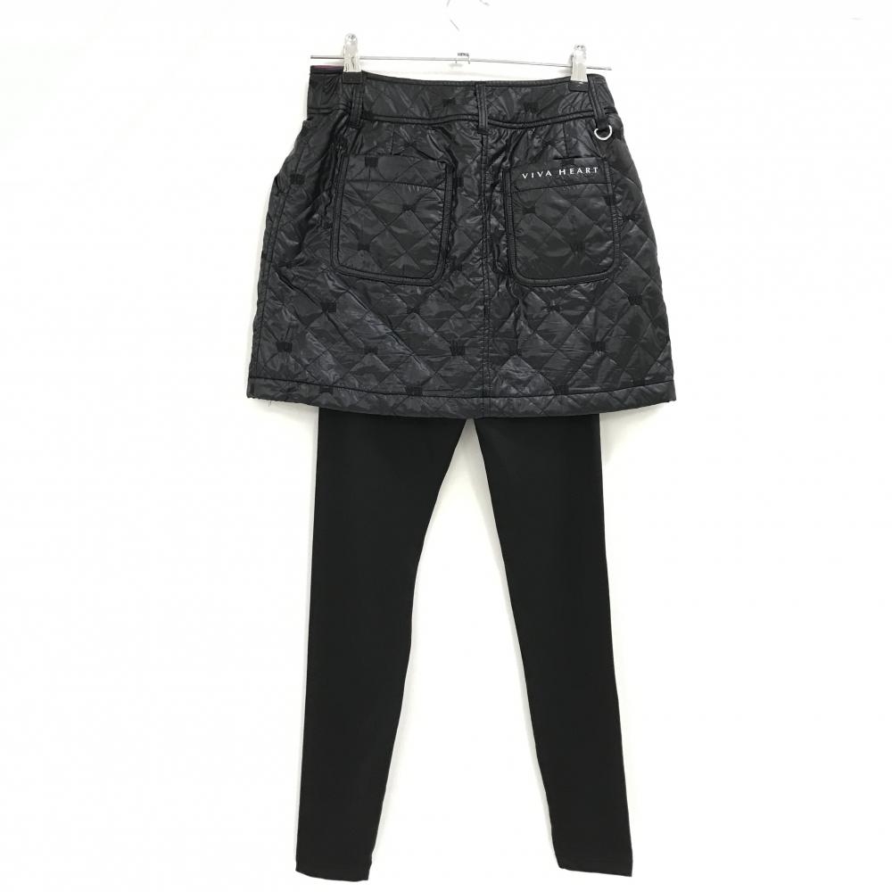 【美品】ビバハート レギンス付き中綿スカート 黒 キルティング 刺しゅう総柄 レディース 40(M) ゴルフウェア VIVA HEART