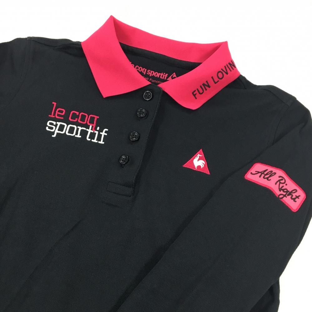 ルコックゴルフ 長袖ポロシャツ 黒×ピンク ロゴ刺しゅう レディース M ゴルフウェア le coq sportif
