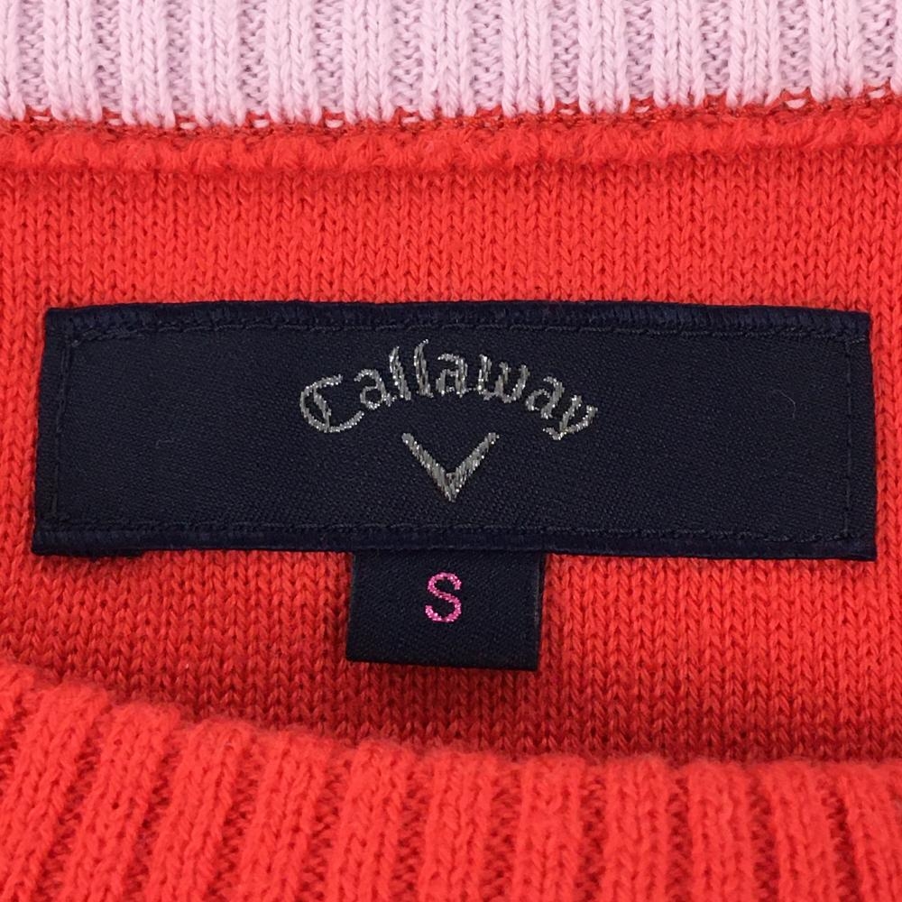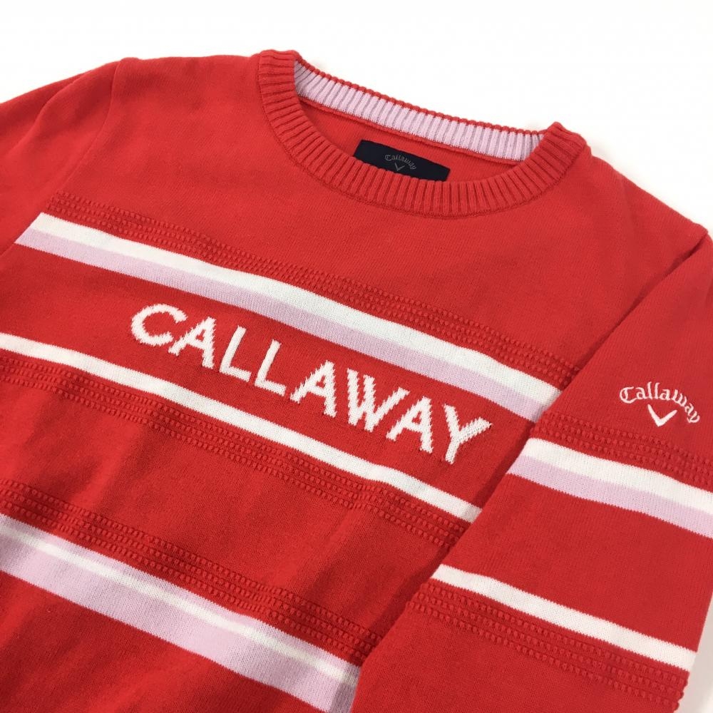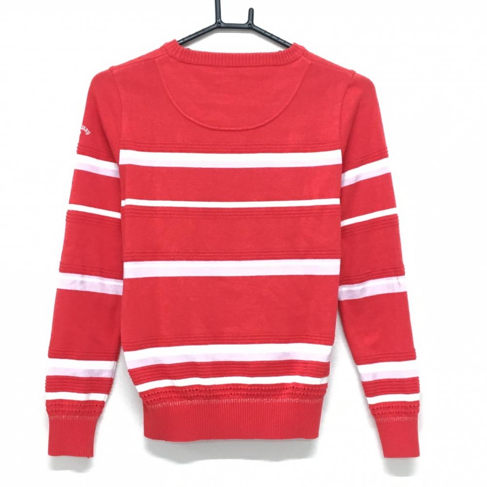 【美品】キャロウェイ セーター レッド×白 ボーダー 一部凹凸編み ニット レディース S ゴルフウェア Callaway