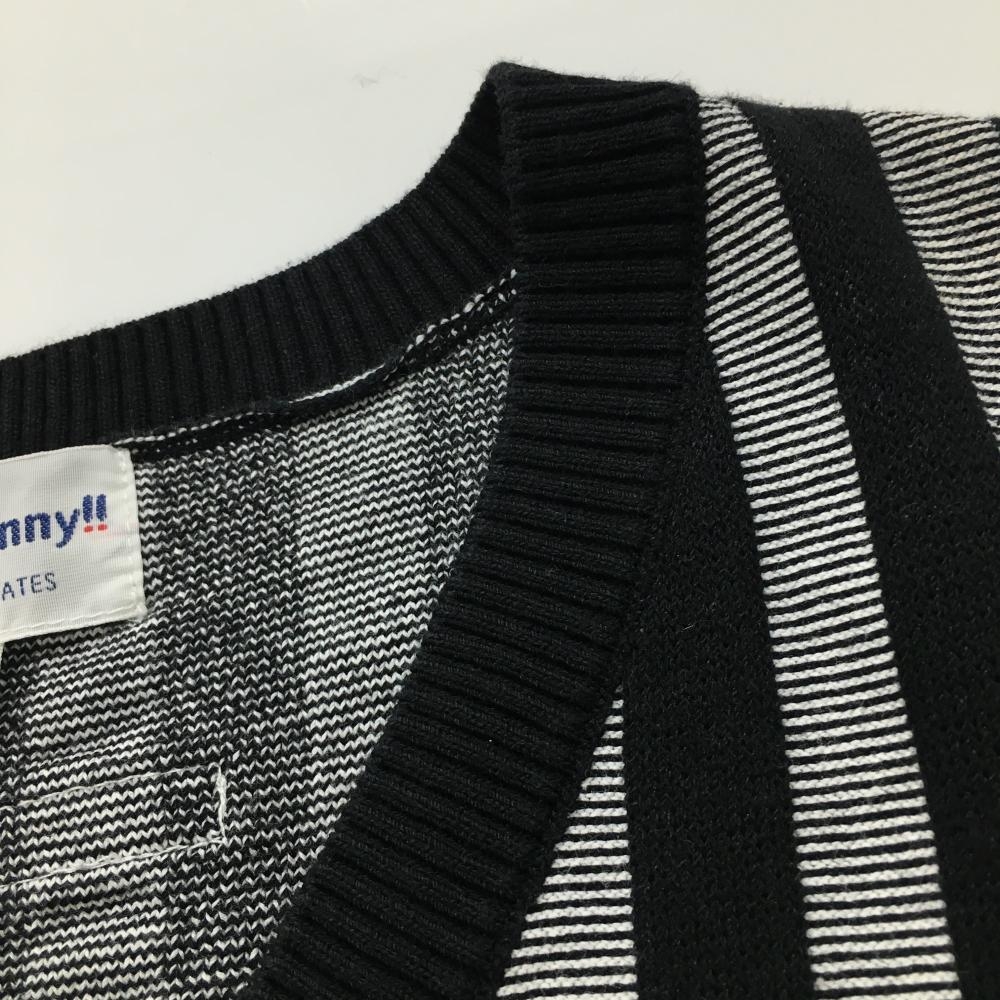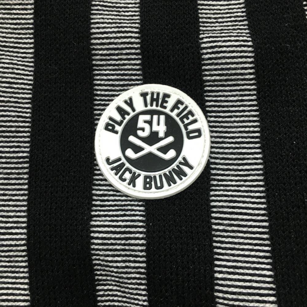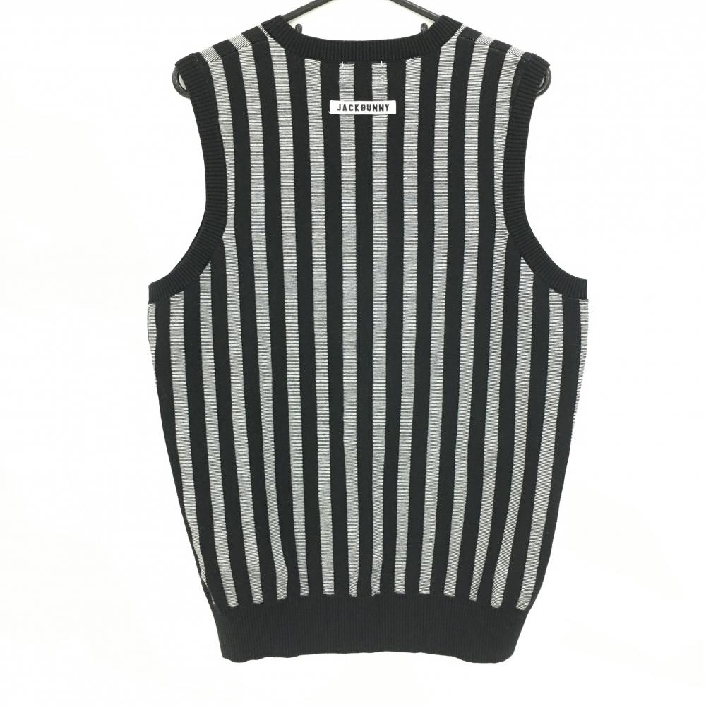 ジャックバニー ニットベスト 黒×グレー ストライプ ロゴワッペン Vネック メンズ 6(XL ) ゴルフウェア Jack Bunny