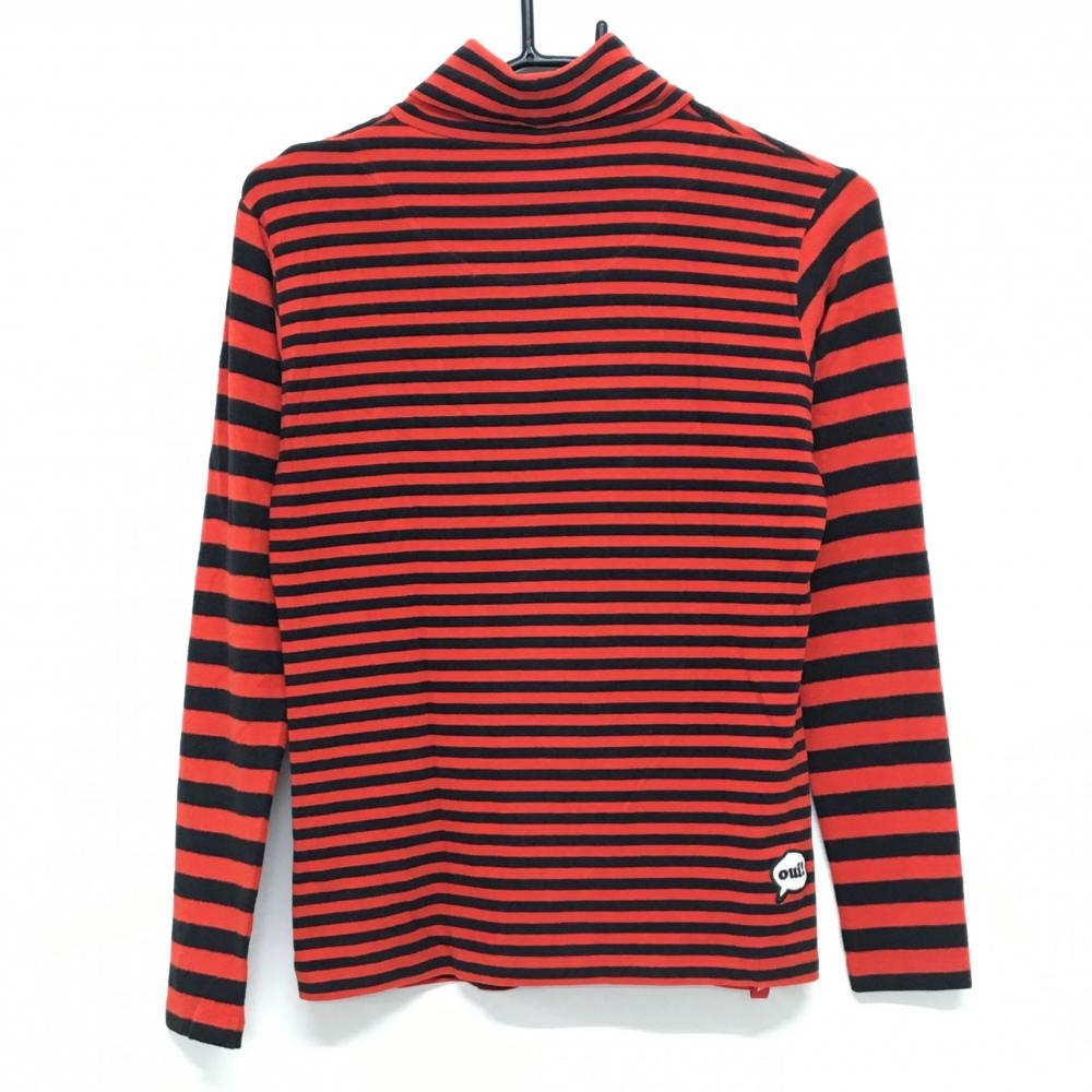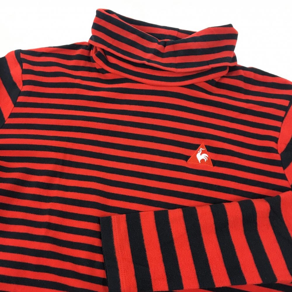ルコックゴルフ 長袖タートルネックシャツ レッド×黒 ボーダー ロゴ刺しゅう レディース M ゴルフウェア le coq sportif