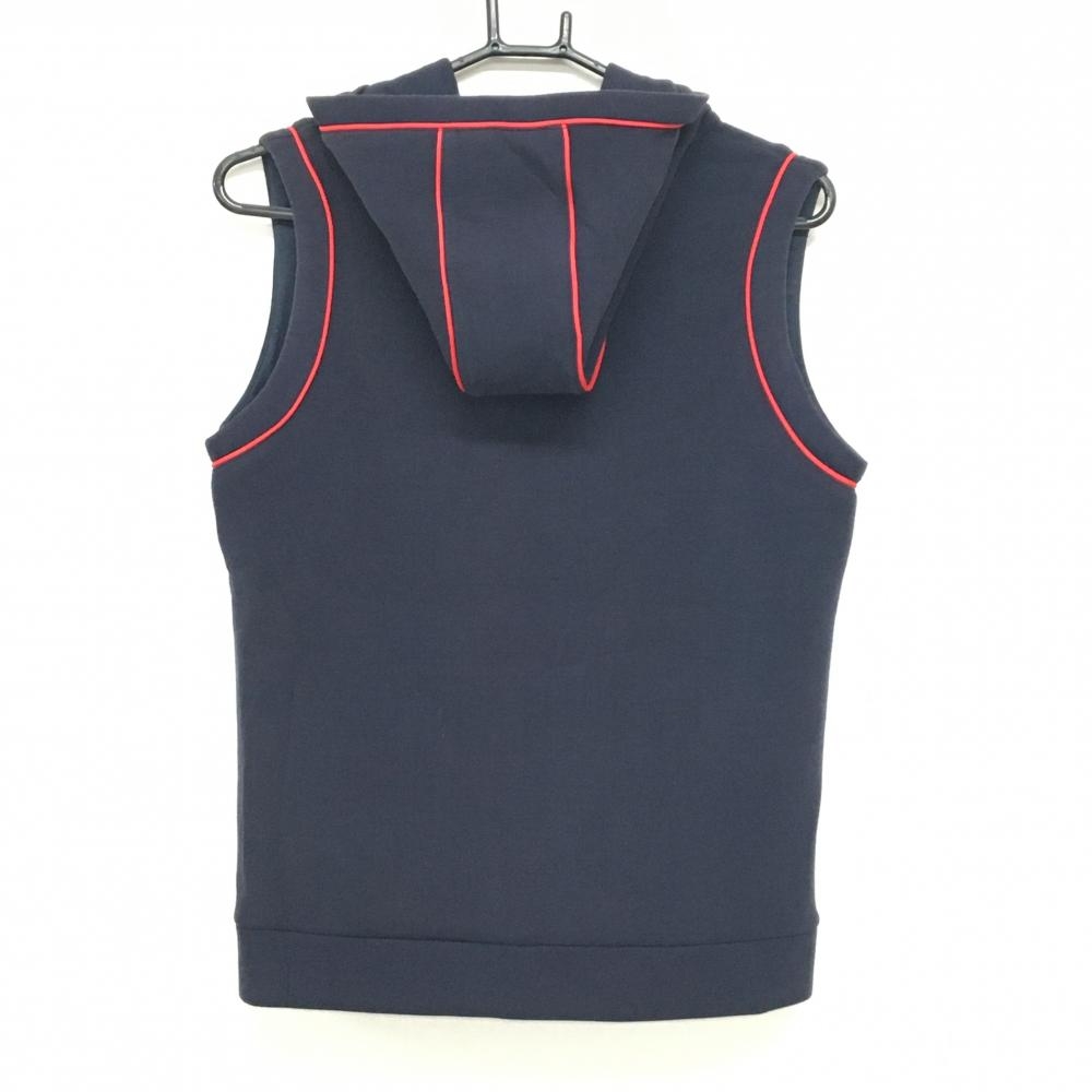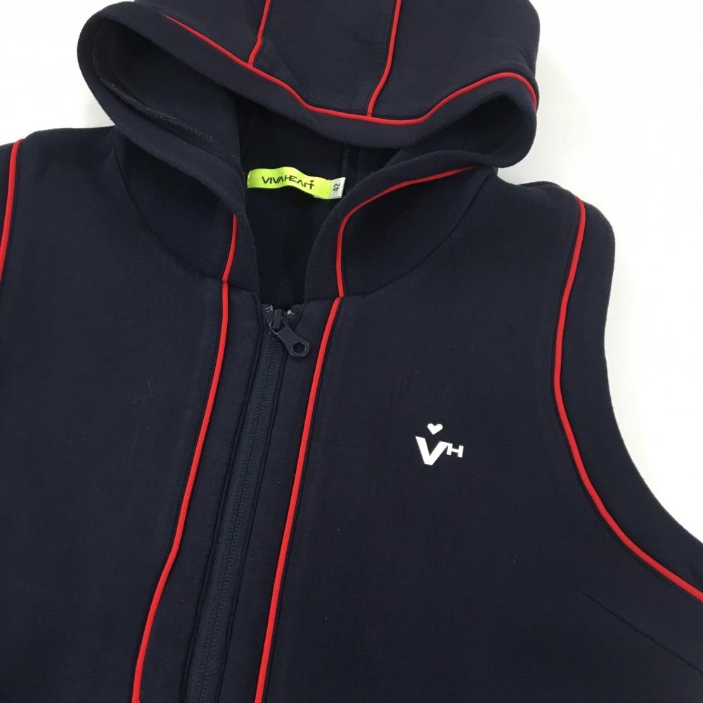 ビバハート フード付きベスト ネイビー×レッド ロゴ ダブルジップ レディース 42(L) ゴルフウェア VIVA HEART