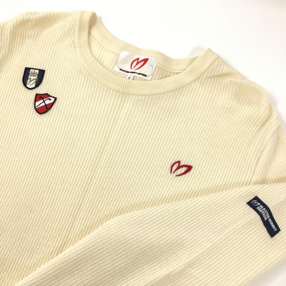 【美品】マスターバニー セーター アイボリー ニット ウール100% メンズ 5(L) ゴルフウェア MASTER BUNNY EDITION