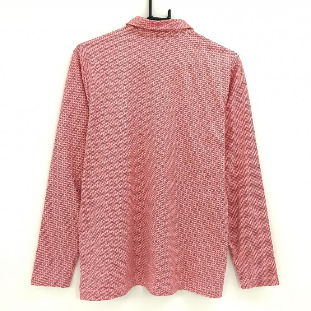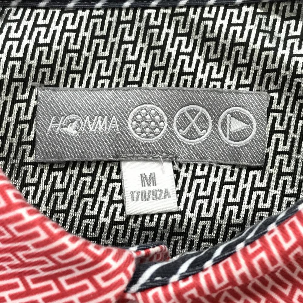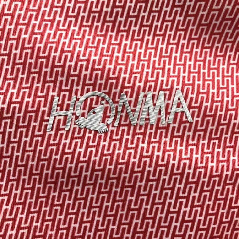 【超美品】ホンマ 長袖ポロシャツ レッド×白 総柄 ロゴプリント メンズ M ゴルフウェア HONMA