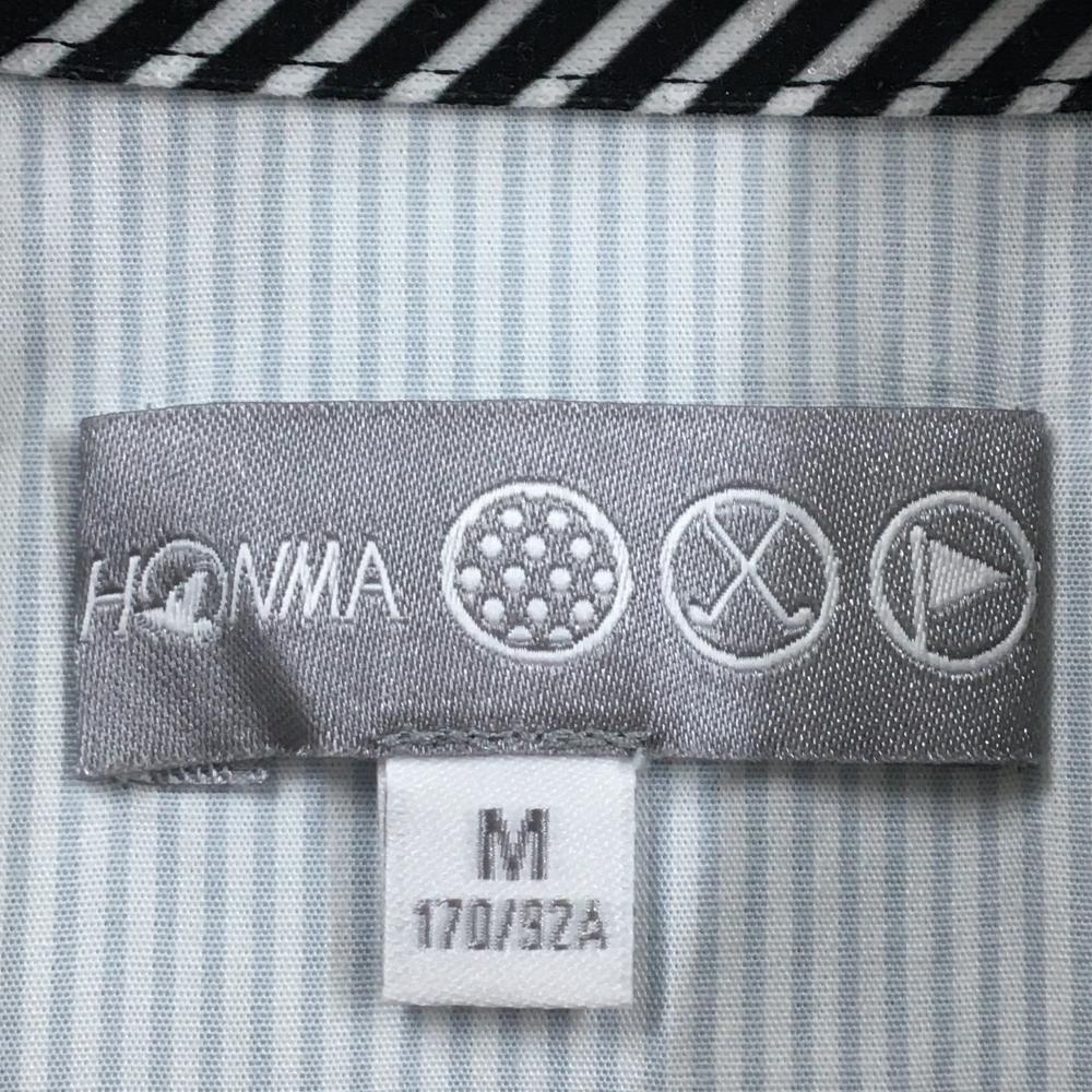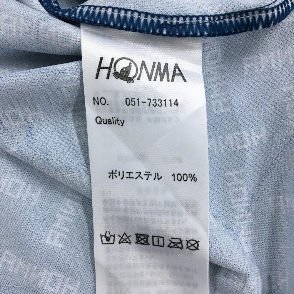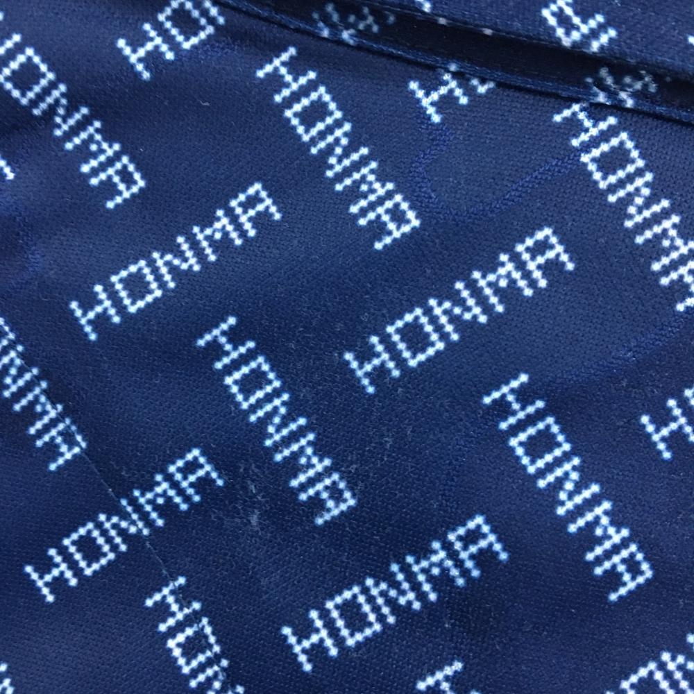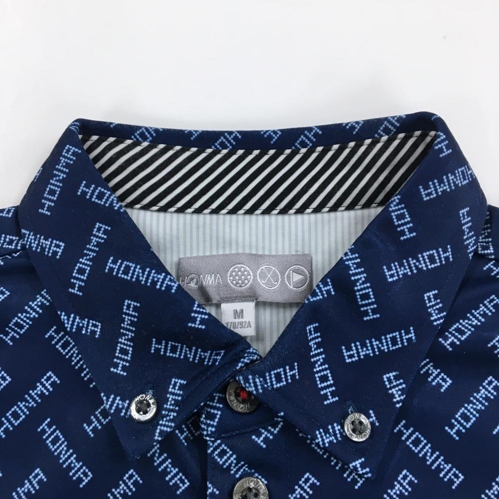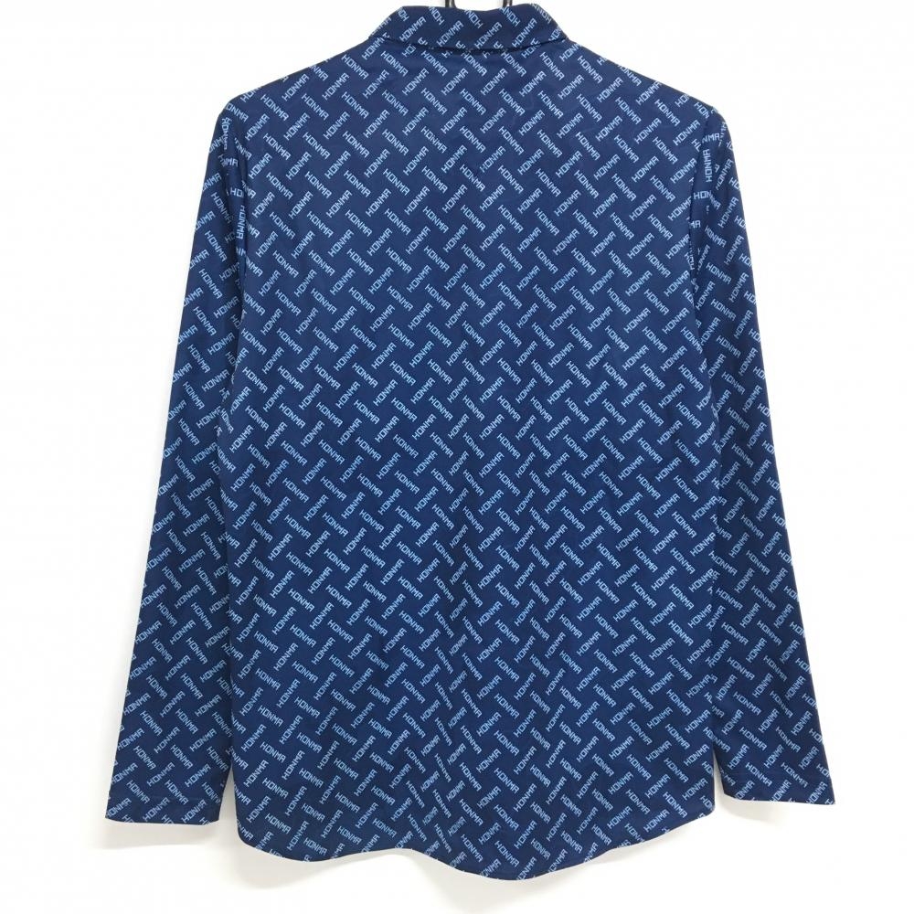 【美品】ホンマ 長袖ポロシャツ ネイビー×白 ロゴ総柄 ボタンダウン メンズ M ゴルフウェア HONMA