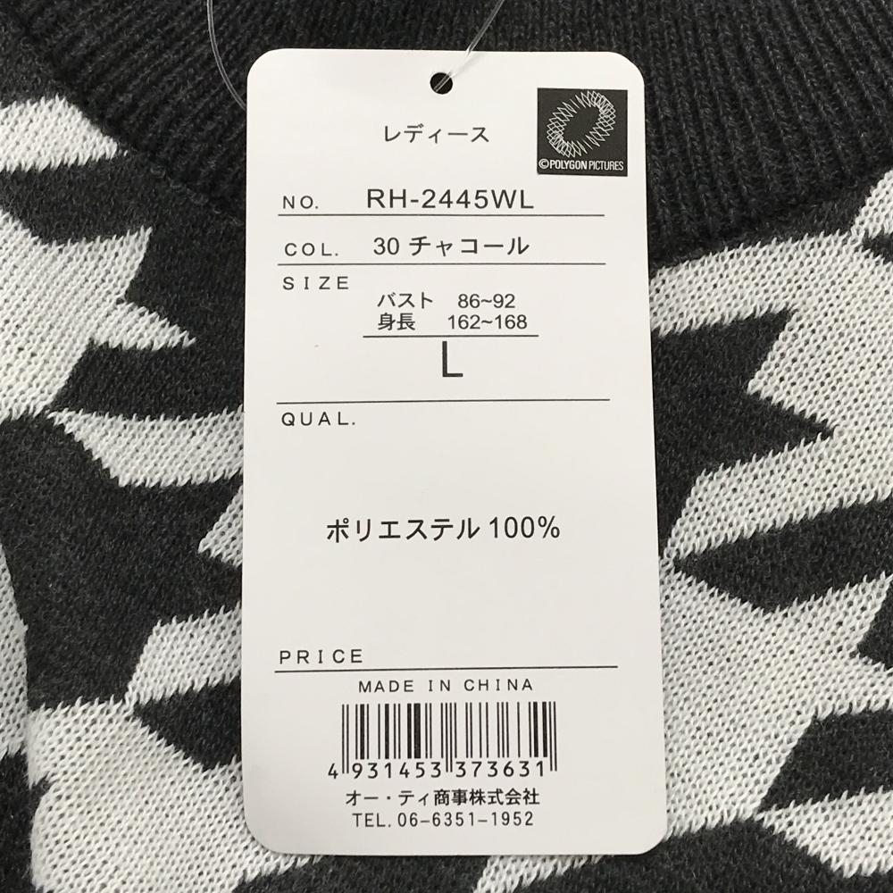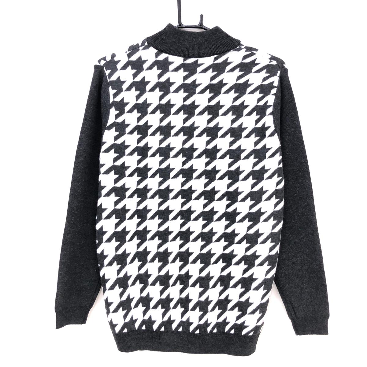 【新品】ロッキー&ホッパー ハイネックセーター グレー×白 身頃千鳥格子 ニット レディース L ゴルフウェア ROCKY&HOPPER
