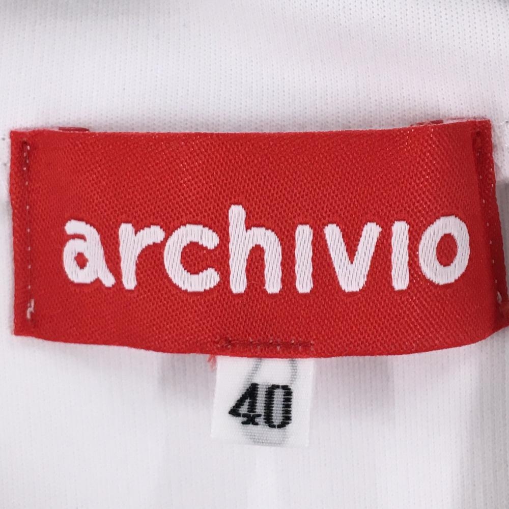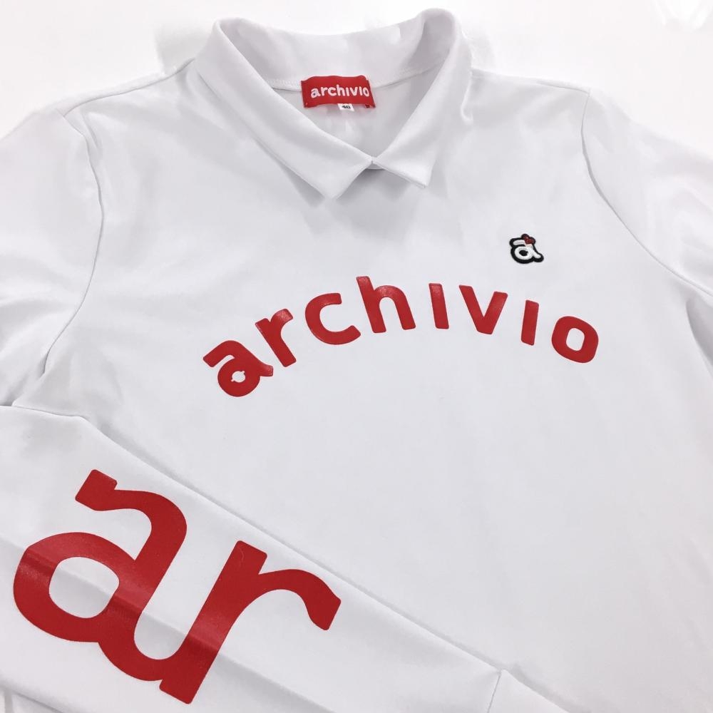 【超美品】アルチビオ 長袖ハイネックシャツ 白×レッド ビッグロゴ レディース 40(L) ゴルフウェア archivio