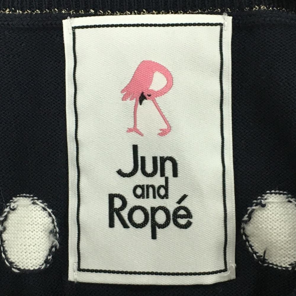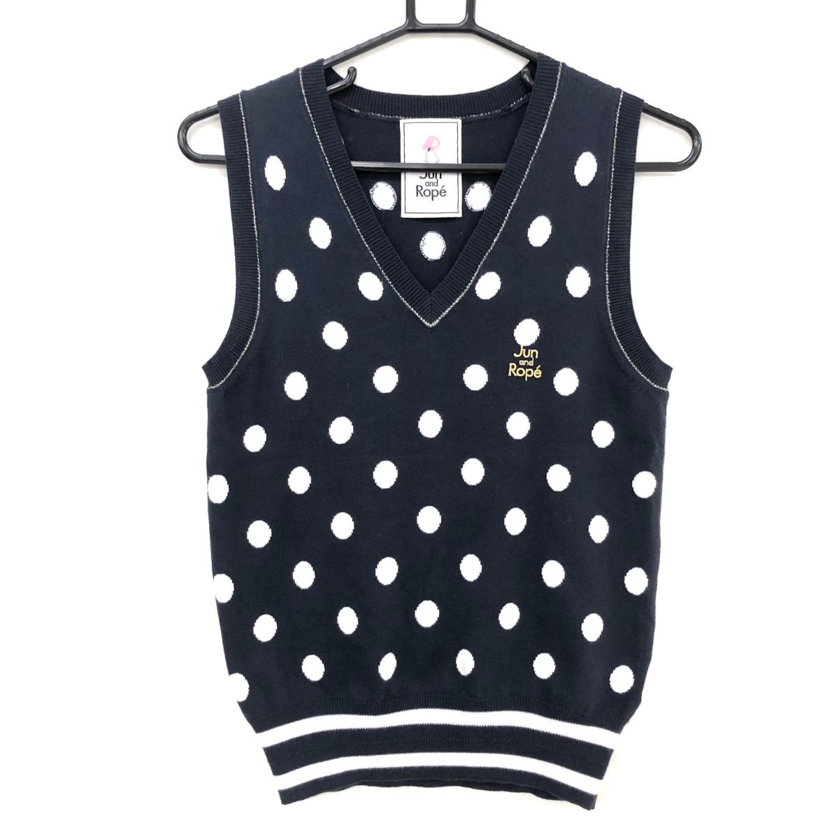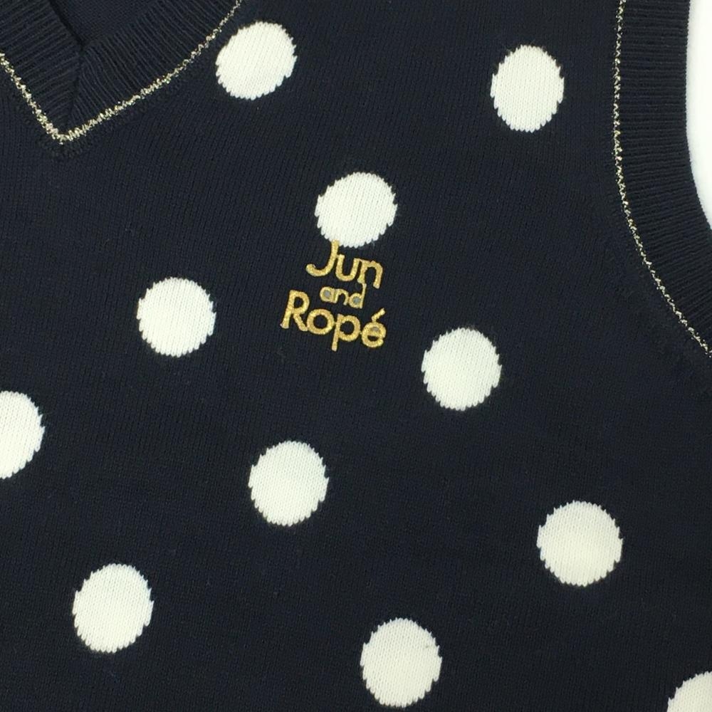 【美品】ジュンアンドロペ ニットベスト ネイビー×白 ドット柄 ロゴ刺しゅう コットン混 レディース L ゴルフウェア JUN&ROPE