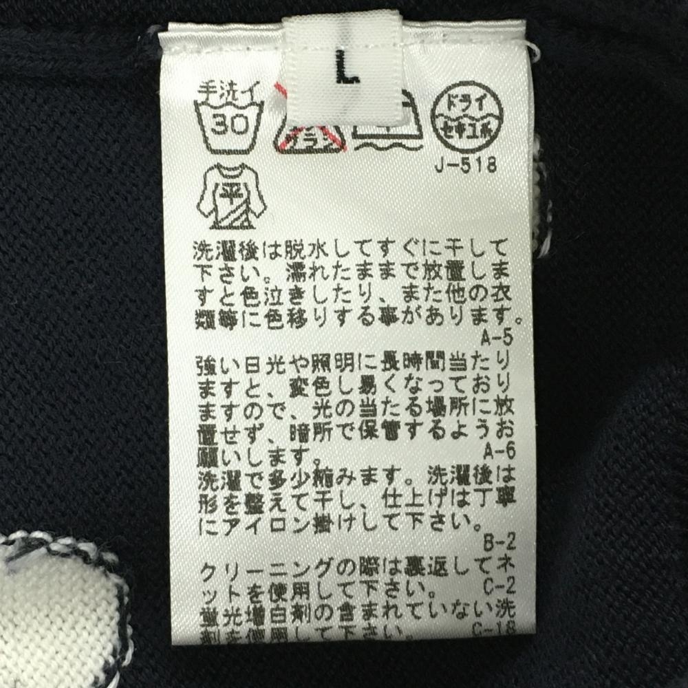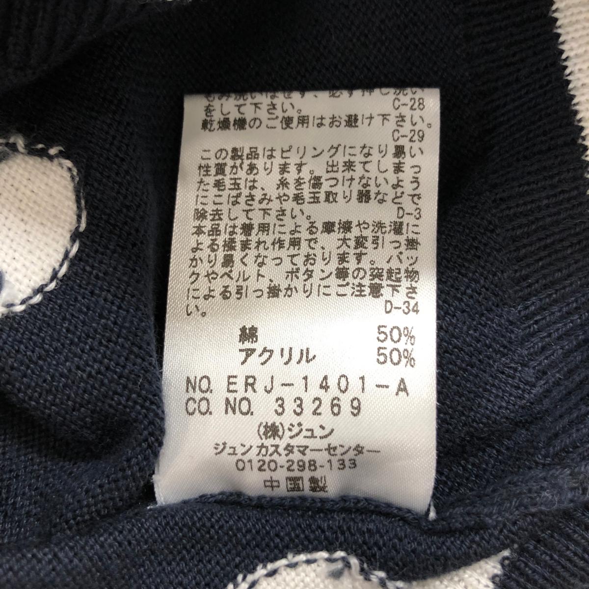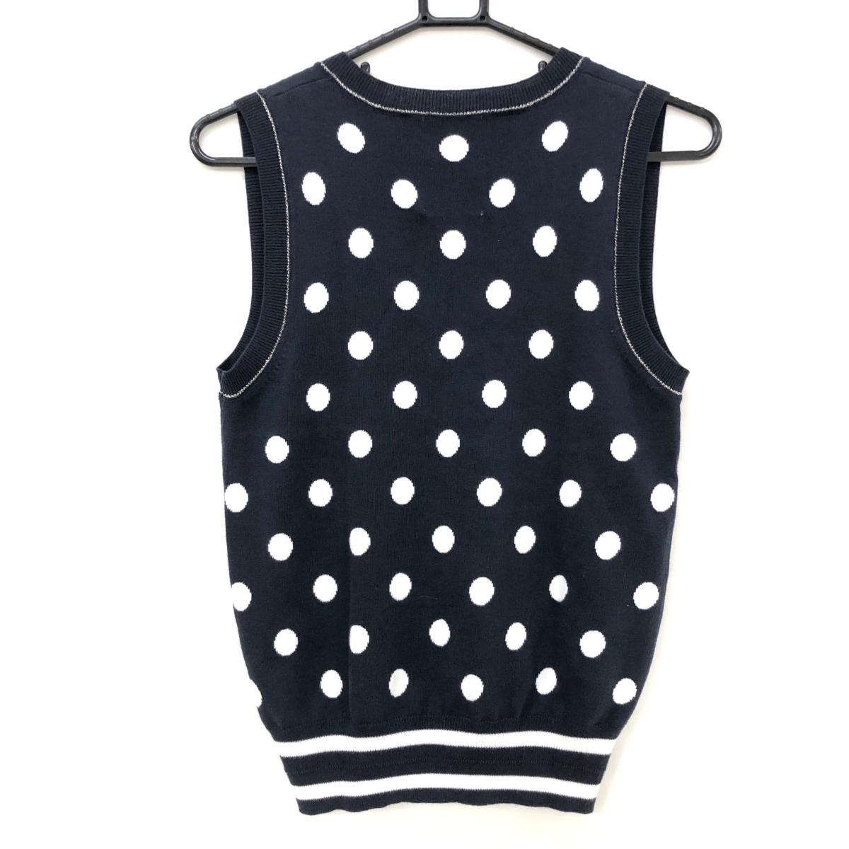 【美品】ジュンアンドロペ ニットベスト ネイビー×白 ドット柄 ロゴ刺しゅう コットン混 レディース L ゴルフウェア JUN&ROPE