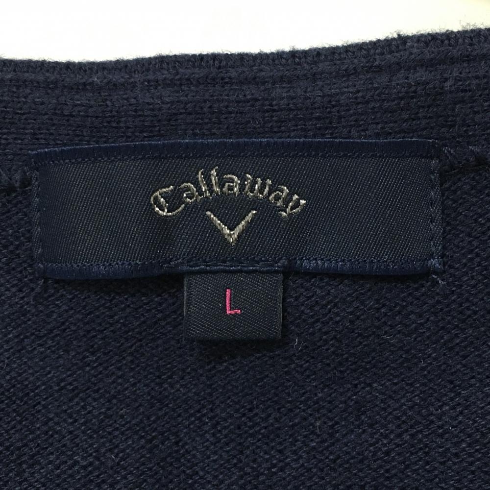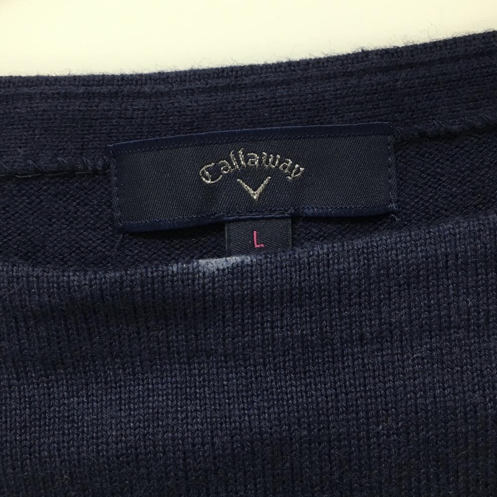 キャロウェイ セーター ネイビー×白 ボーダー コットン混 ニット レディース L ゴルフウェア Callaway