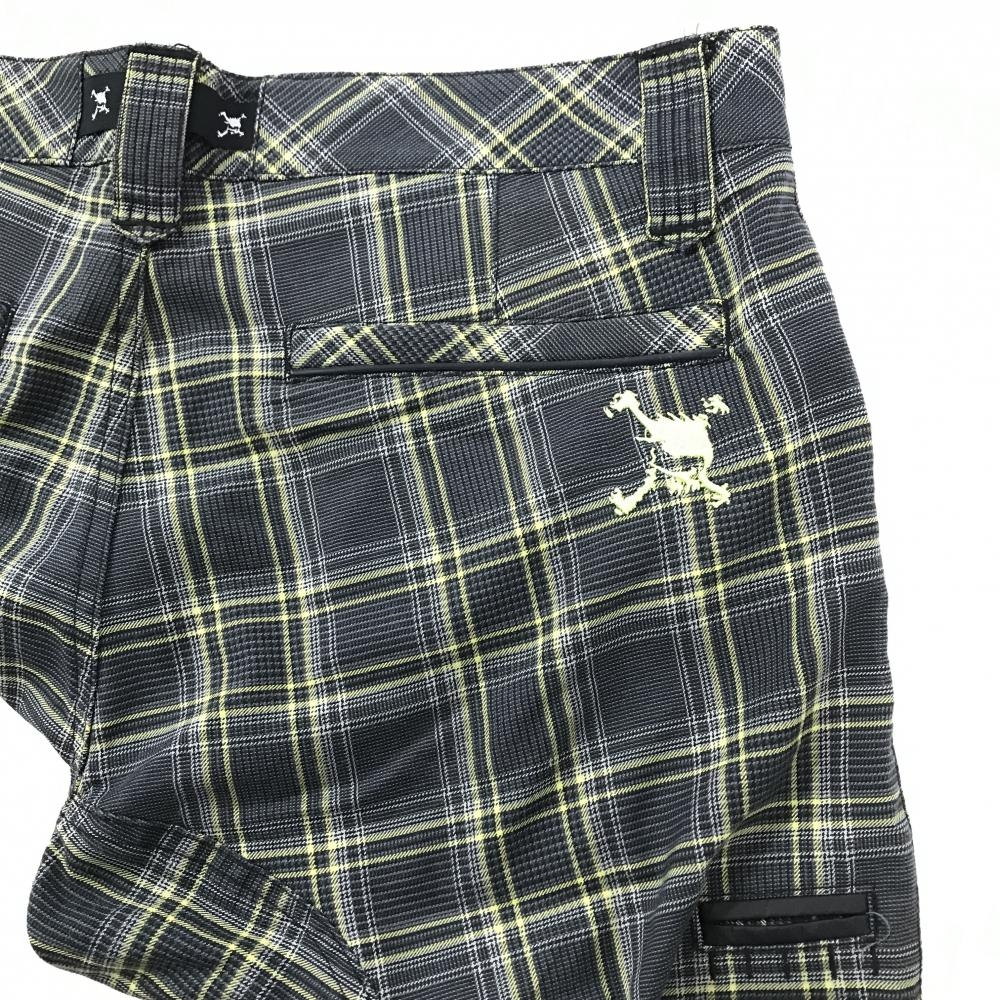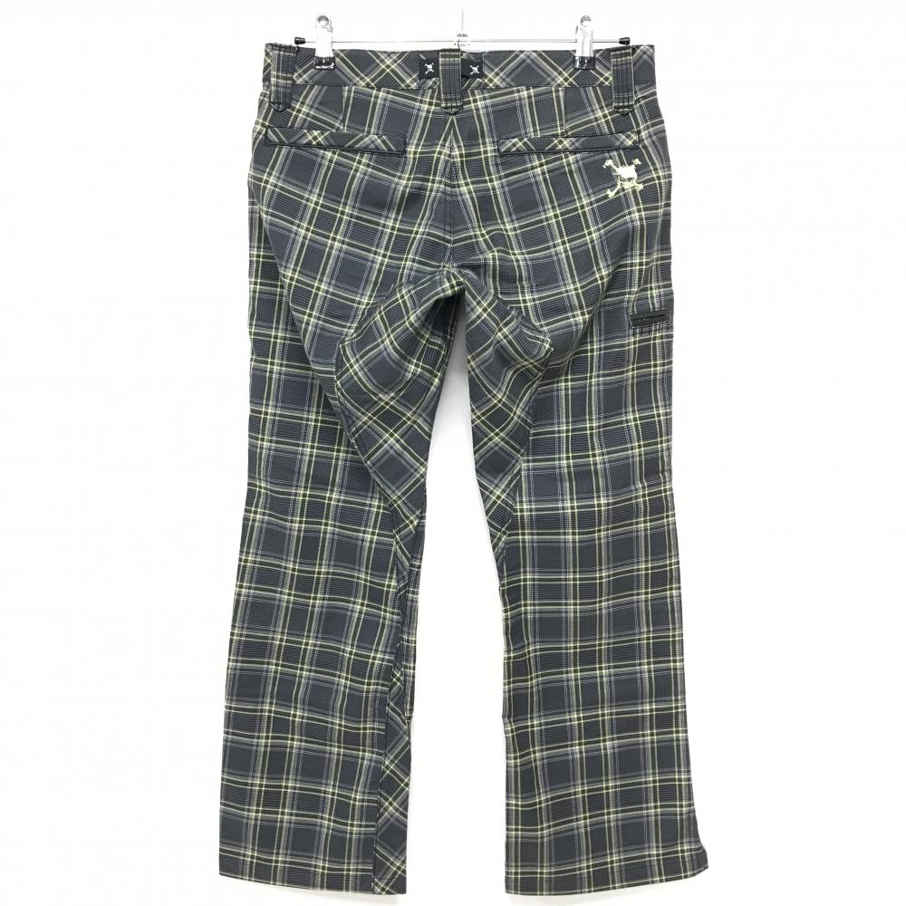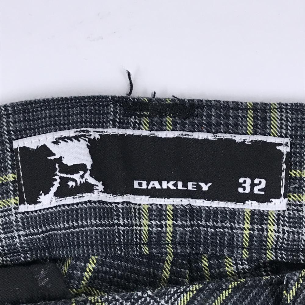 【美品】オークリー パンツ グレー×イエロー チェック ロゴ刺しゅう 裾スリット メンズ 32 ゴルフウェア Oakley