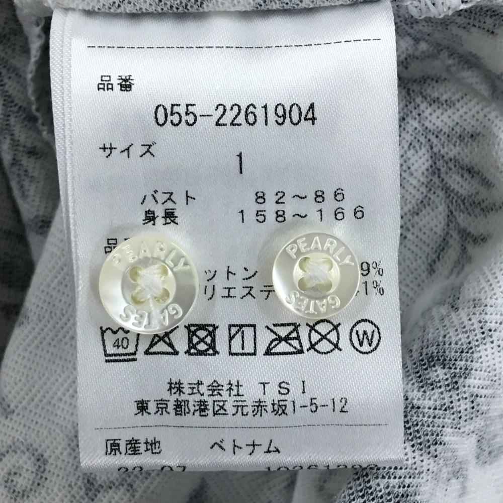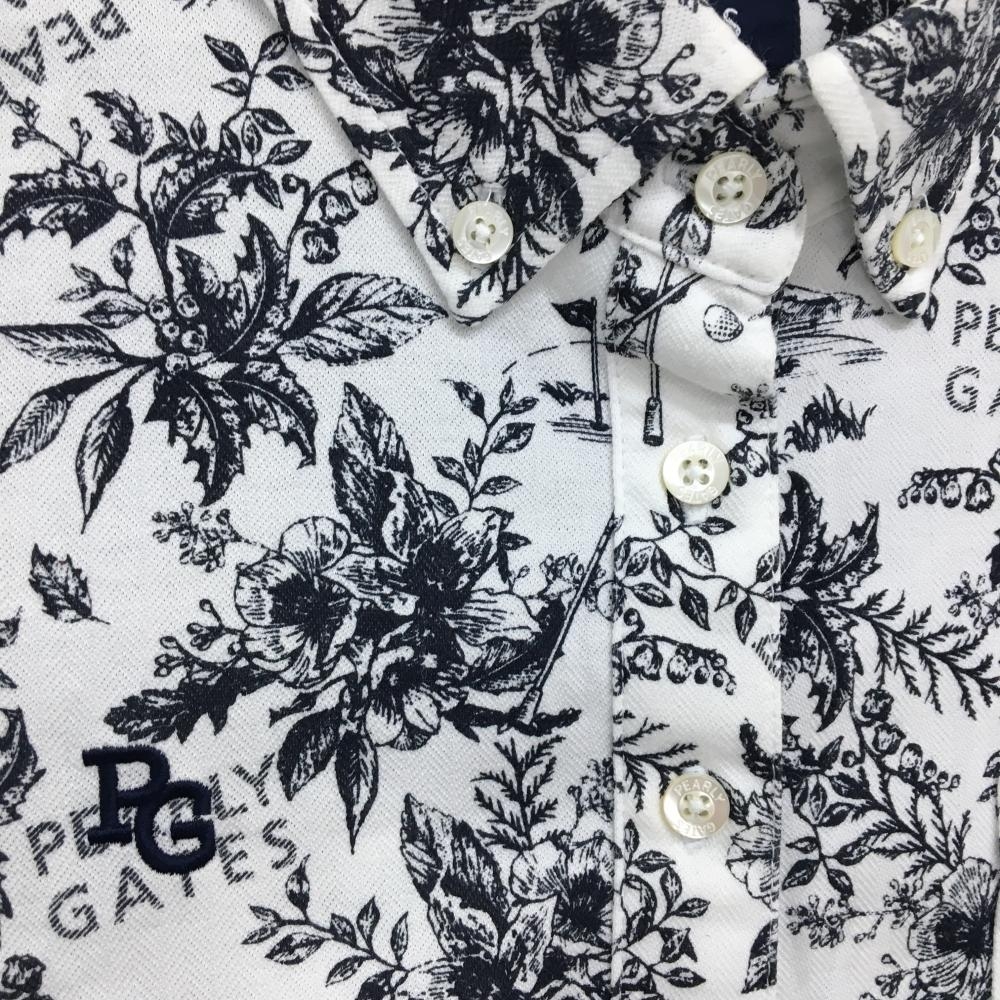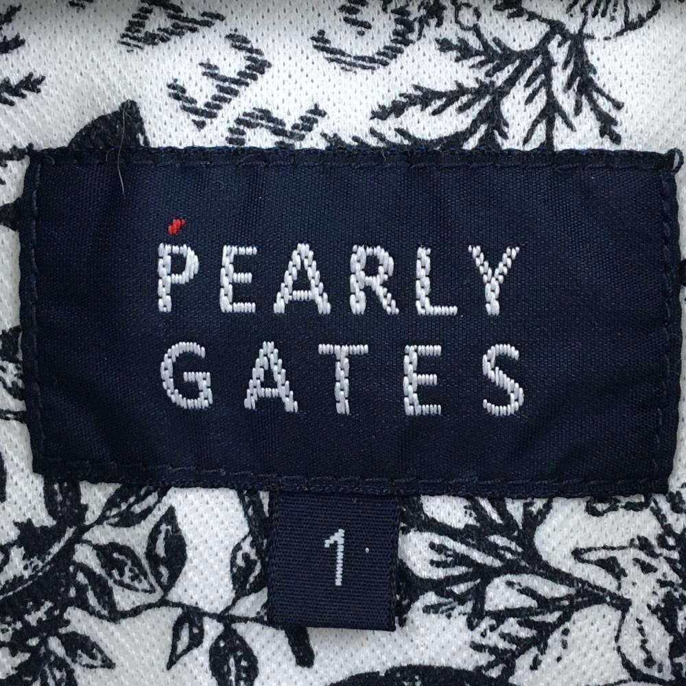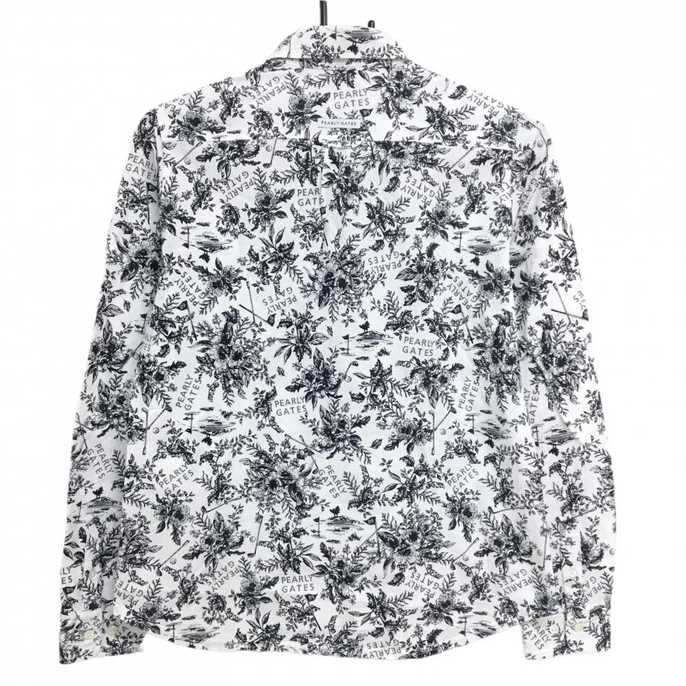 パーリーゲイツ 長袖ポロシャツ 白×黒 花柄 ボタンダウン レディース 1(M) ゴルフウェア PEARLY GATES