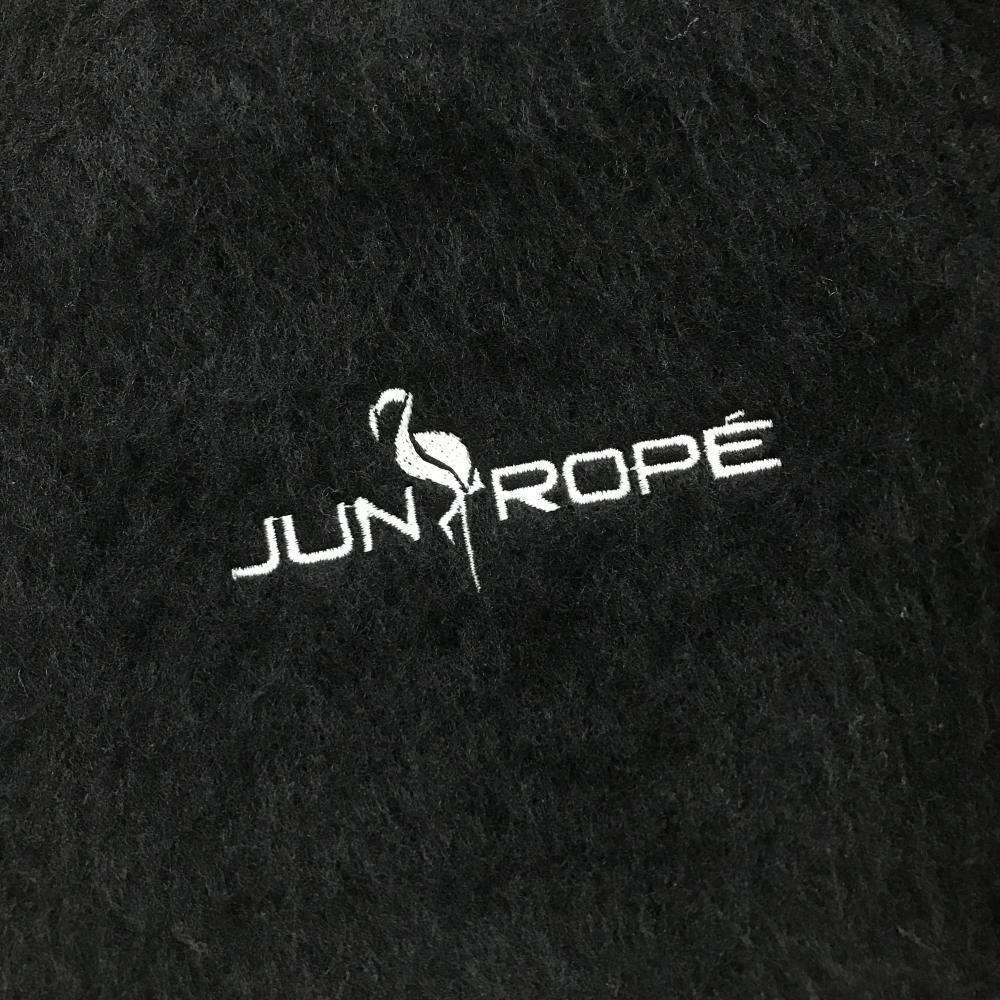 ジュンアンドロペ ハイネックセーター 黒 ロゴ白 シャギー ウール混 ニット レディース M ゴルフウェア JUN&ROPE