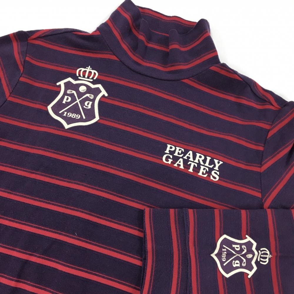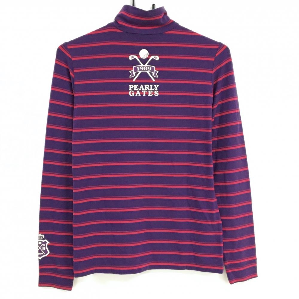 パーリーゲイツ 長袖ハイネックシャツ パープル×レッド ボーダー レディース 1(M) ゴルフウェア PEARLY GATES