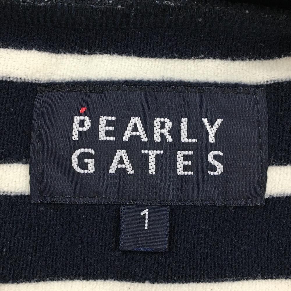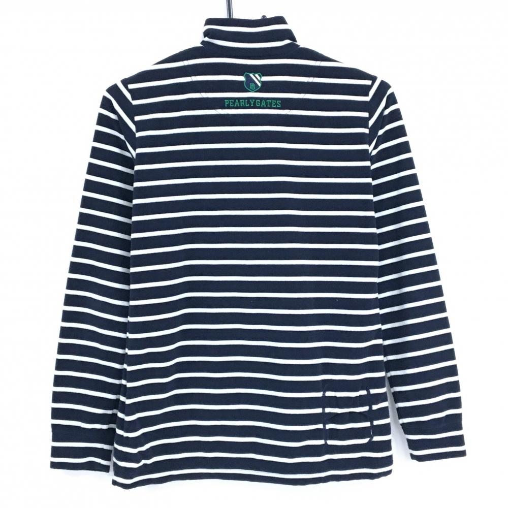 パーリーゲイツ 長袖ハイネックシャツ ネイビー×白 ボーダー 表微起毛 ハーフジップ レディース 1(M) ゴルフウェア PEARLY GATES