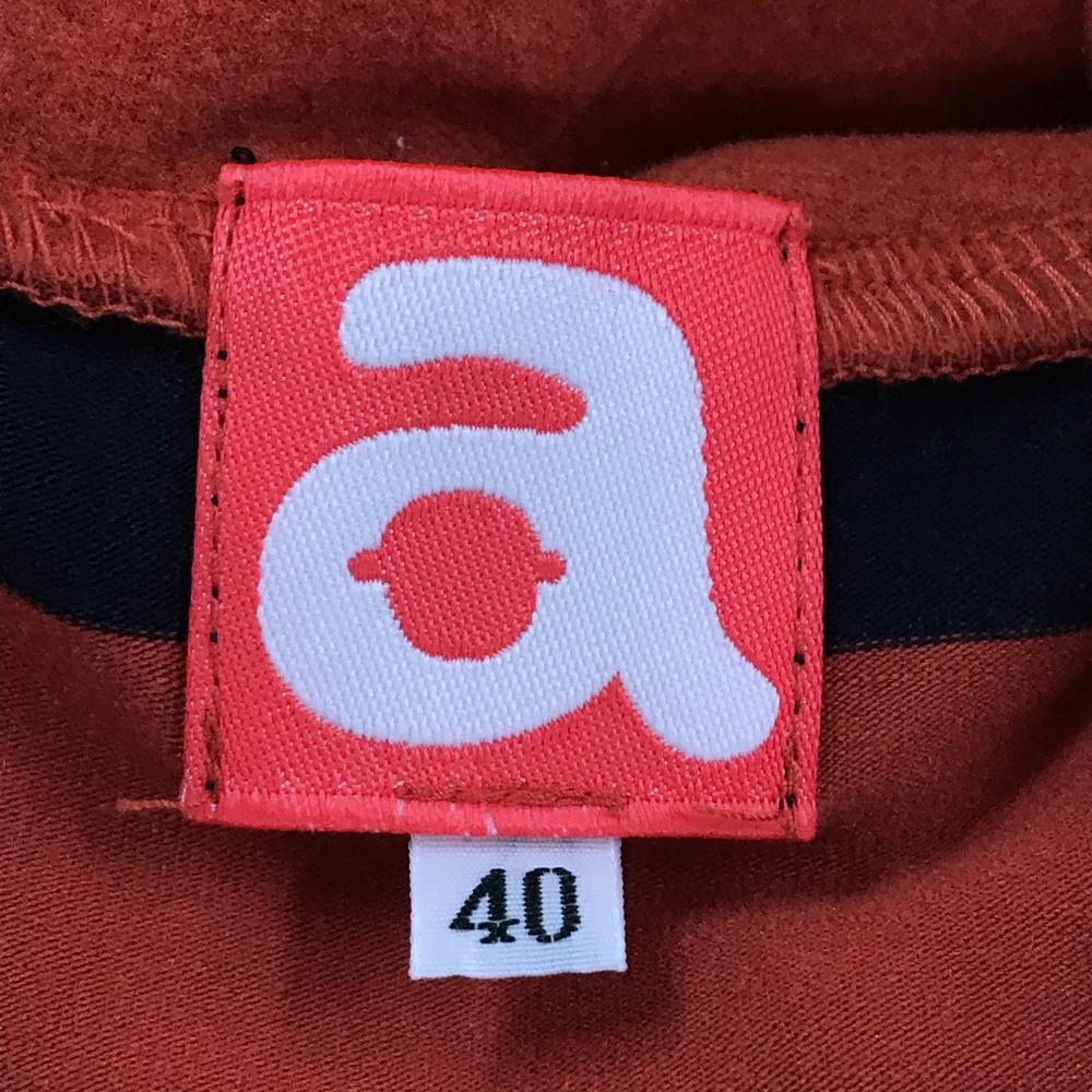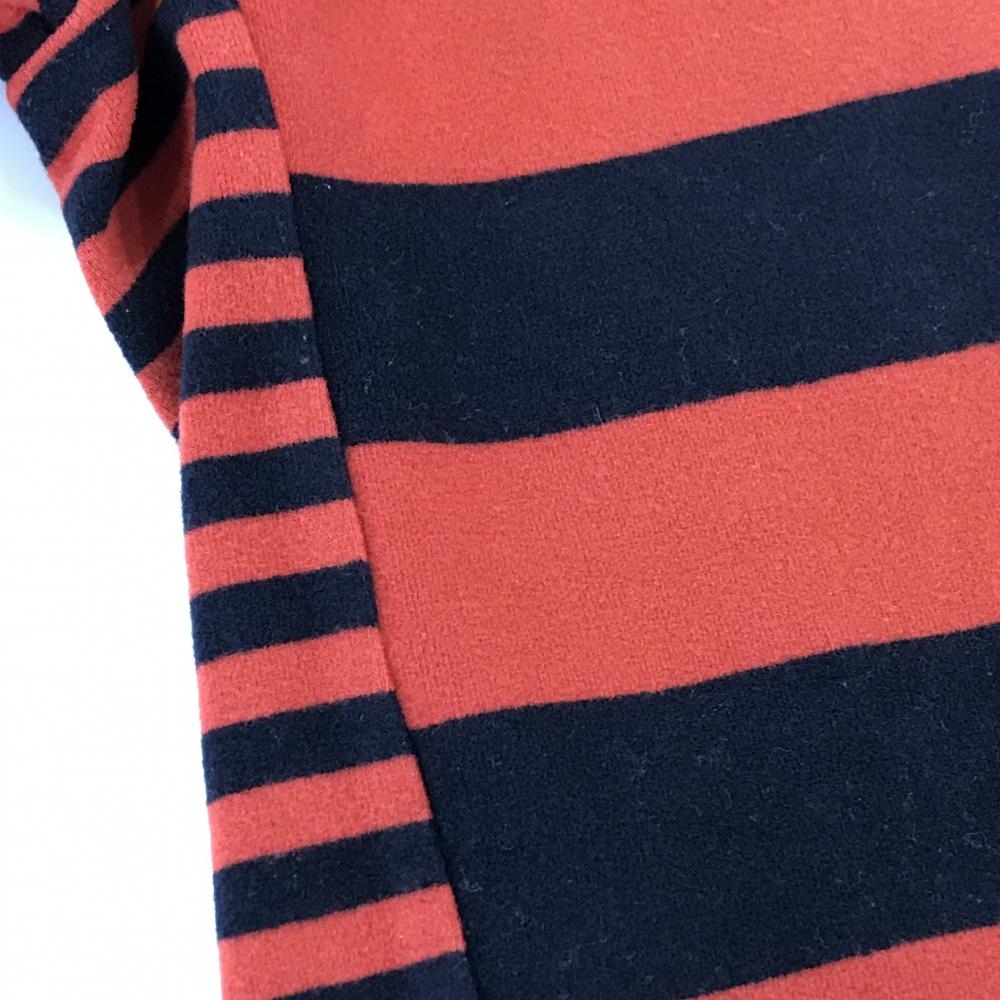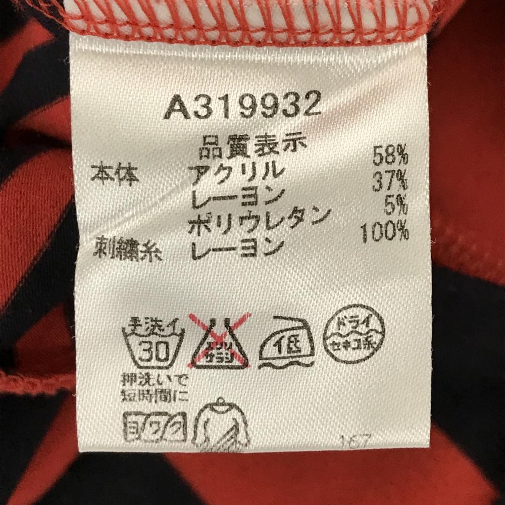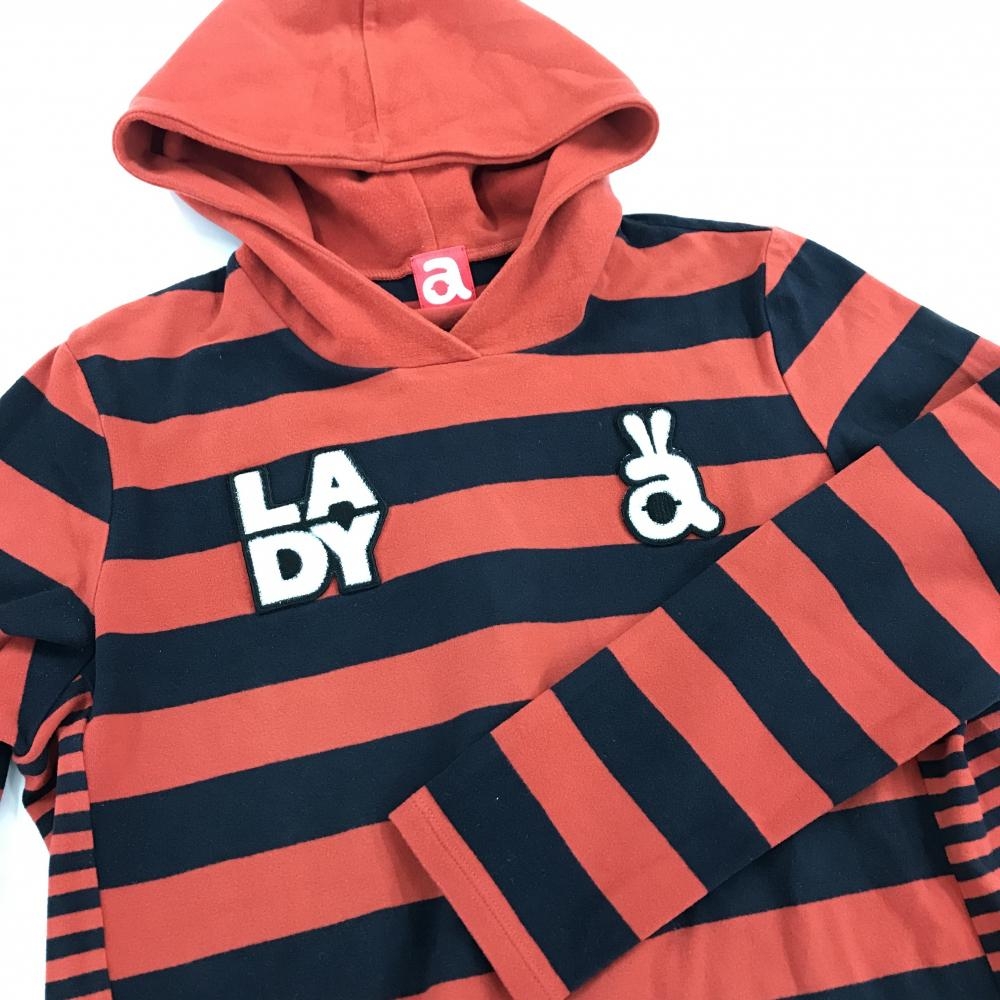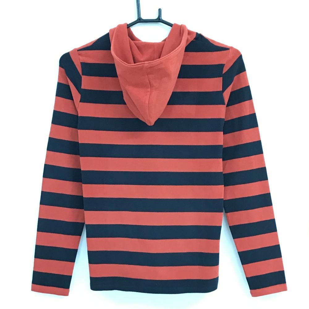 【美品】アルチビオ フード付長袖シャツ レッド系×ダークネイビー ボーダー 微起毛 フロントロゴ レディース 40(L) ゴルフウェア archivio