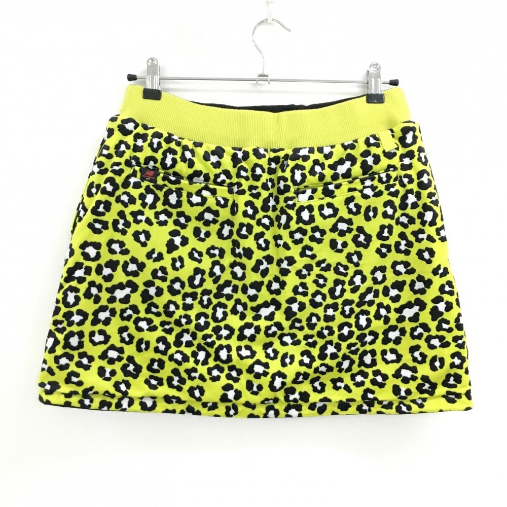 【美品】ニューバランスゴルフ 中綿リバーシブルスカート ライムイエロー系×黒 レオパード レディース 2(L) ゴルフウェア New Balance