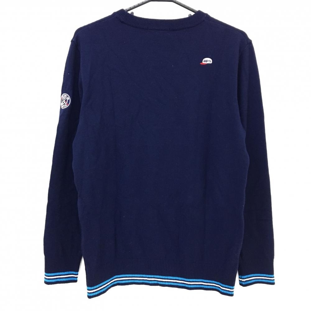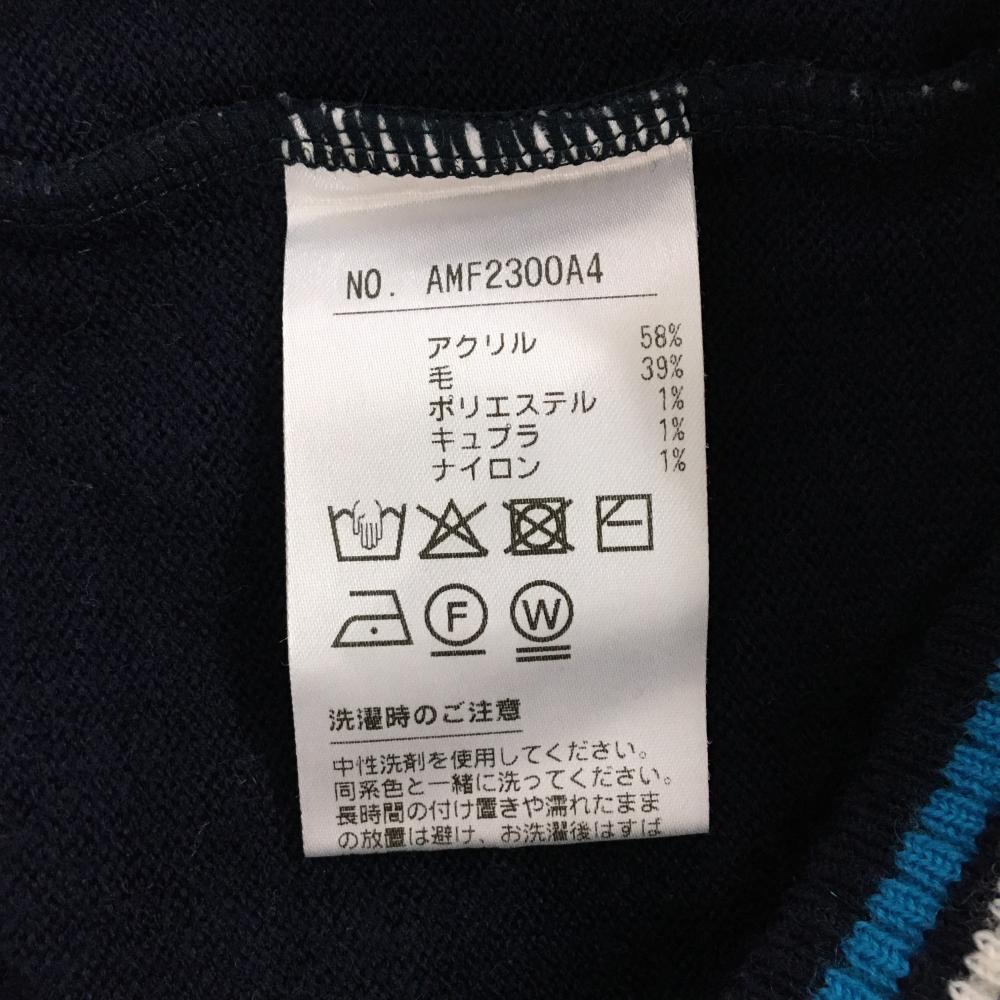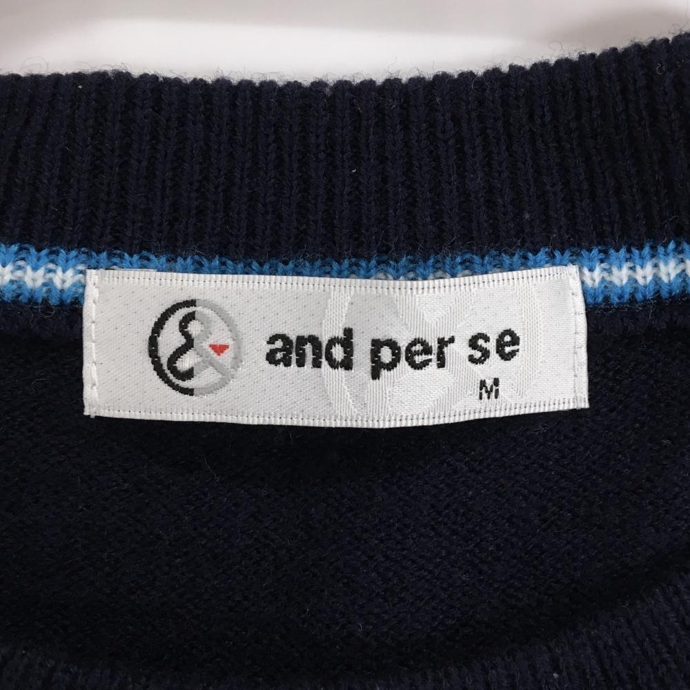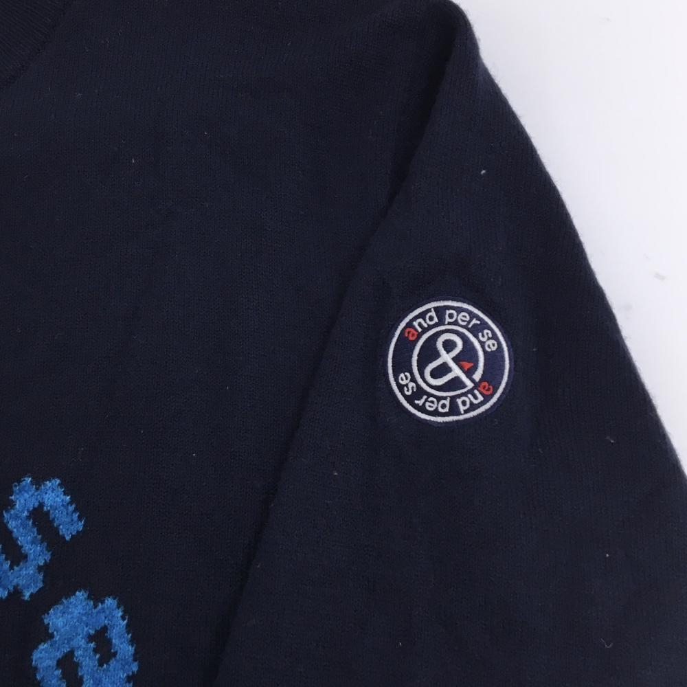 【美品】アンパスィ セーター ネイビー×ライトブルー フロントロゴ ウール混 ニット メンズ M ゴルフウェア and per se
