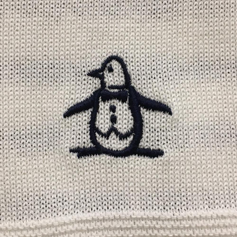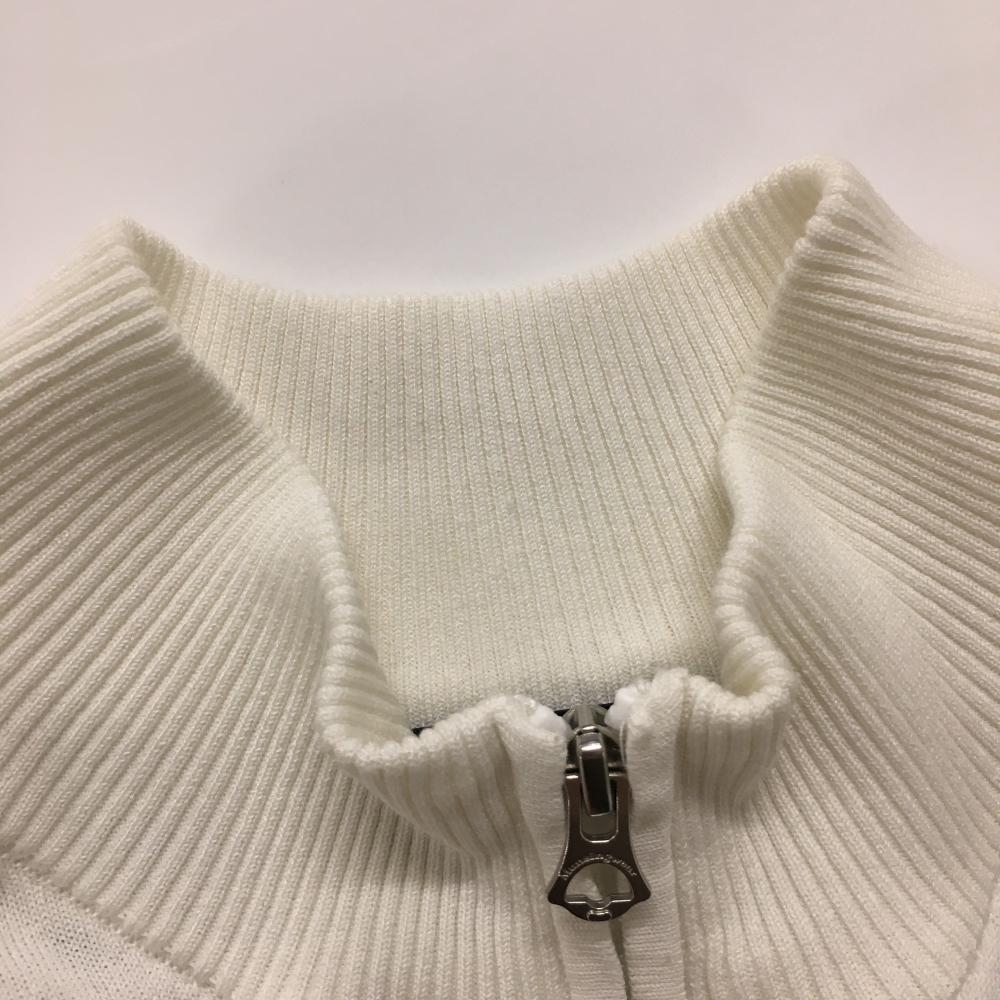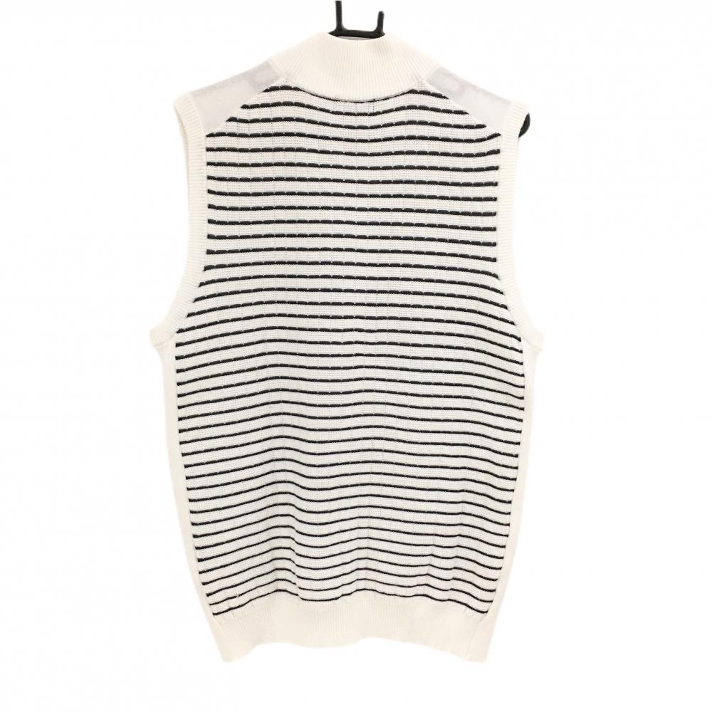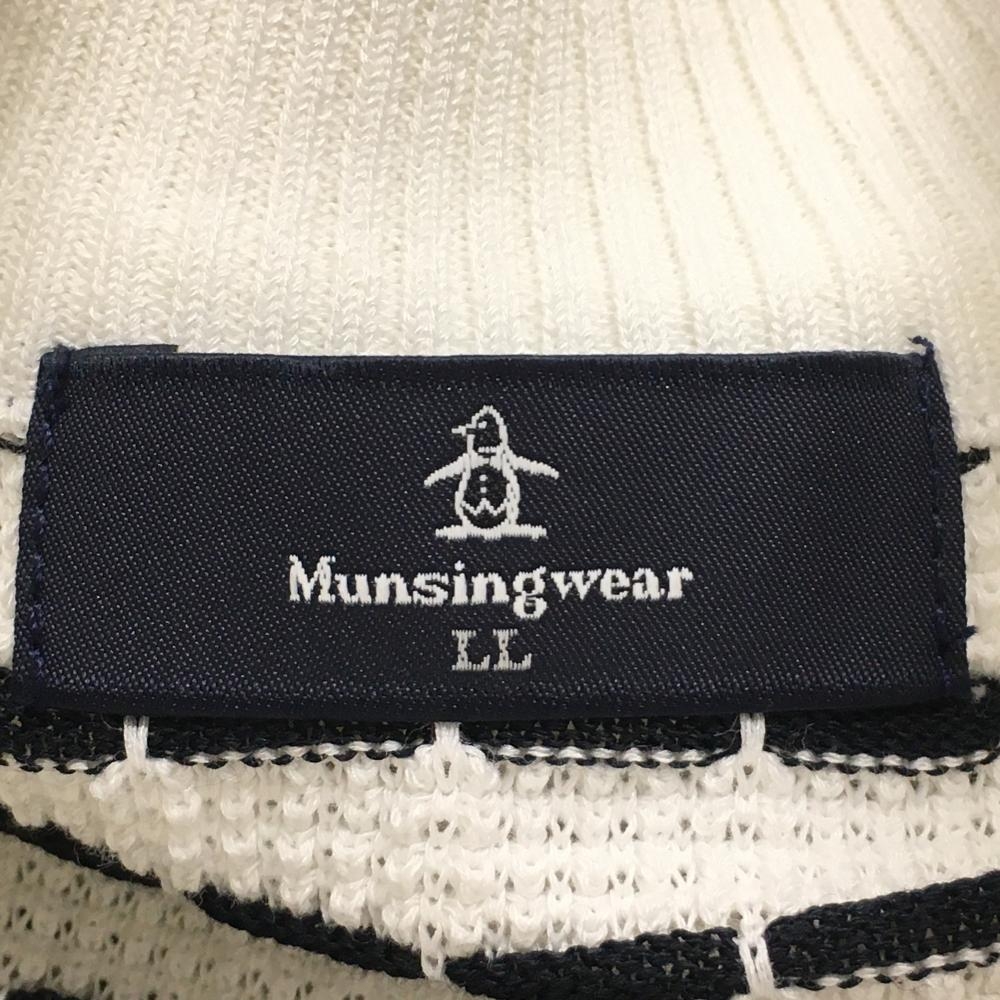 【美品】マンシングウェア ニットジップベスト 白×黒 背面ボーダー編み メンズ LL ゴルフウェア Munsingwear