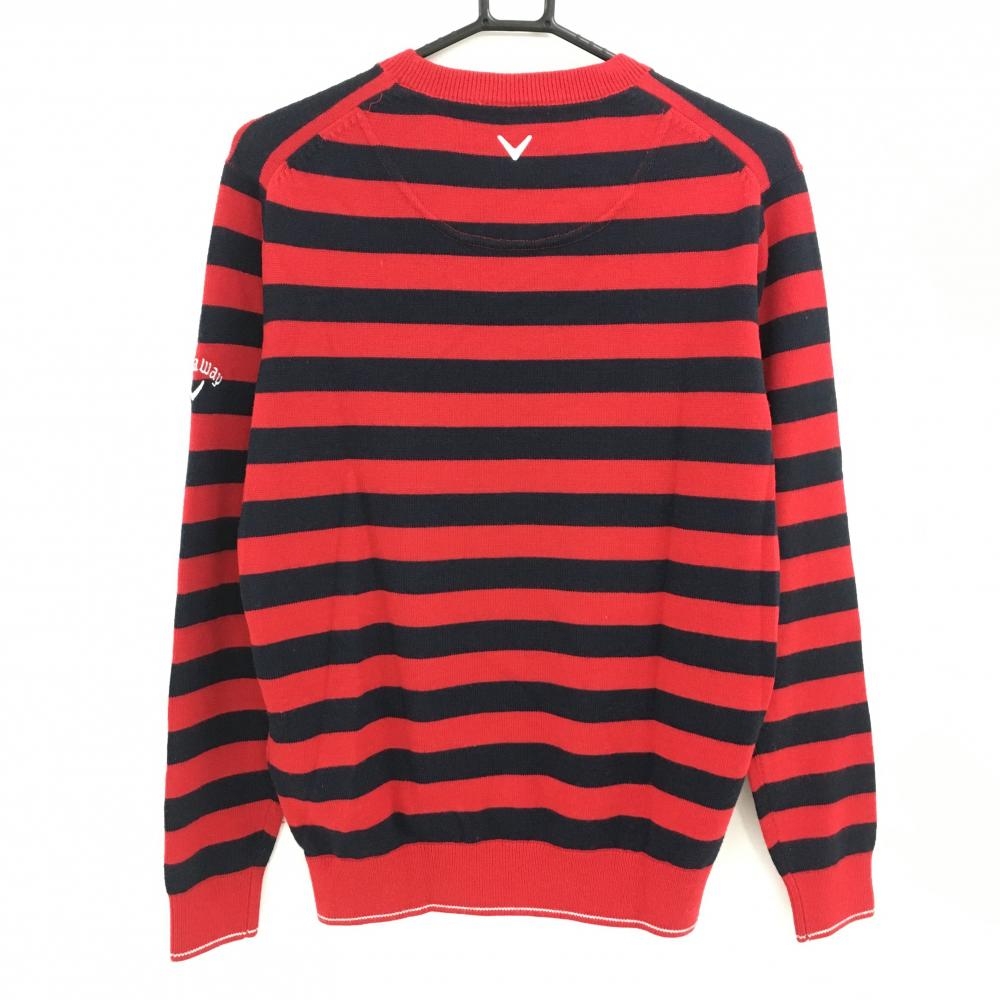キャロウェイ セーター レッド×黒 ボーダー リス ウール混 ニット メンズ M ゴルフウェア Callaway