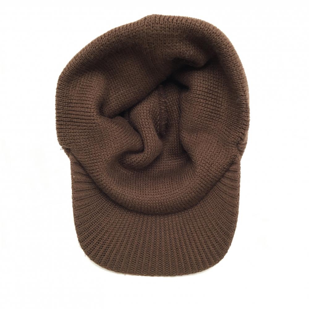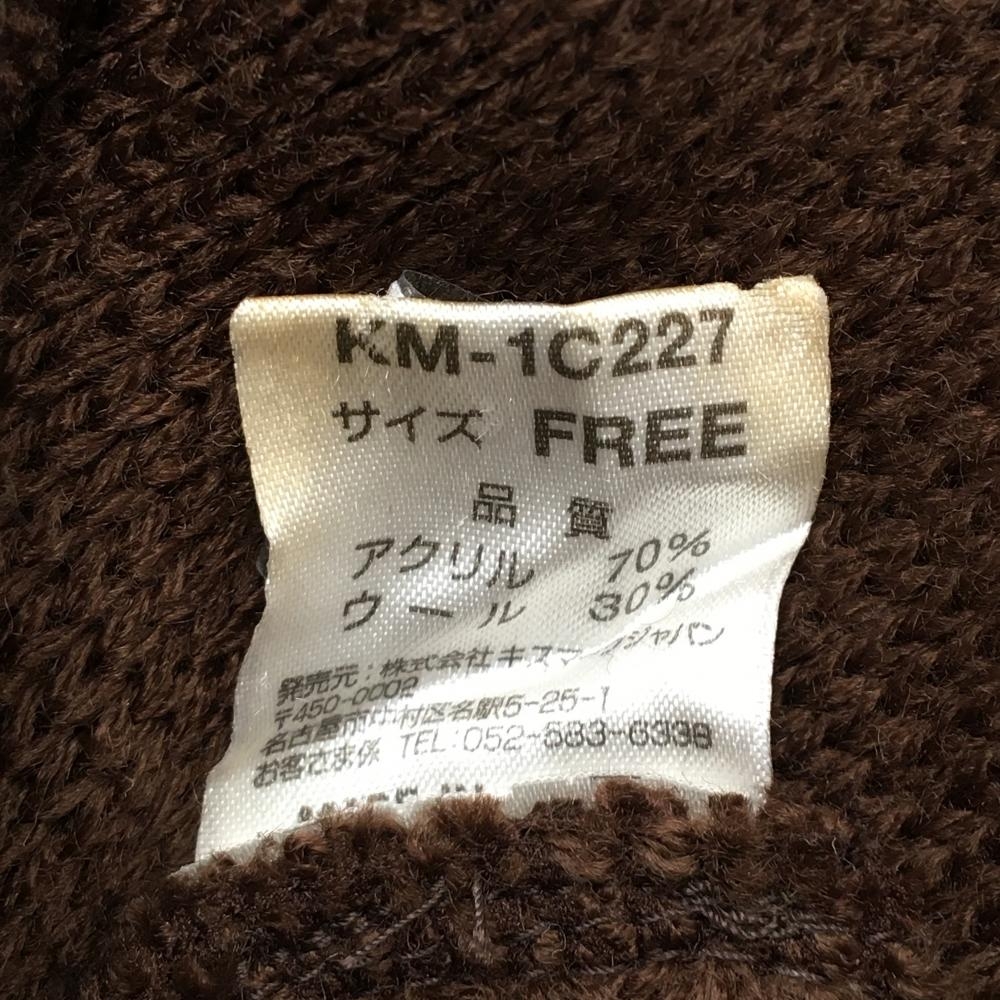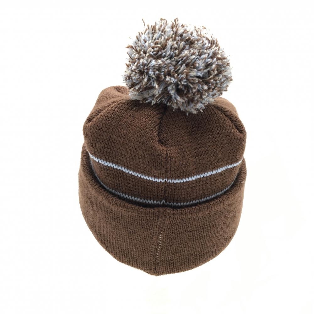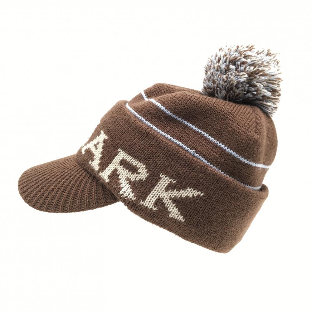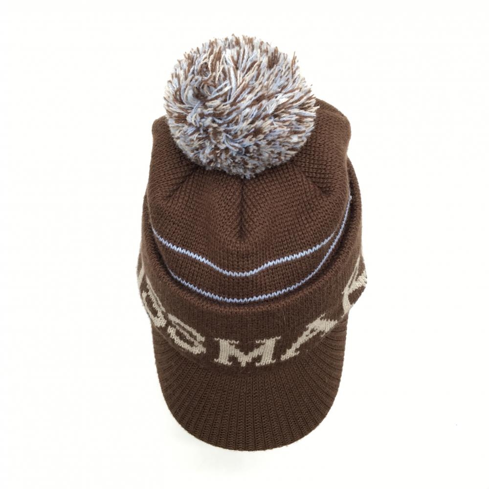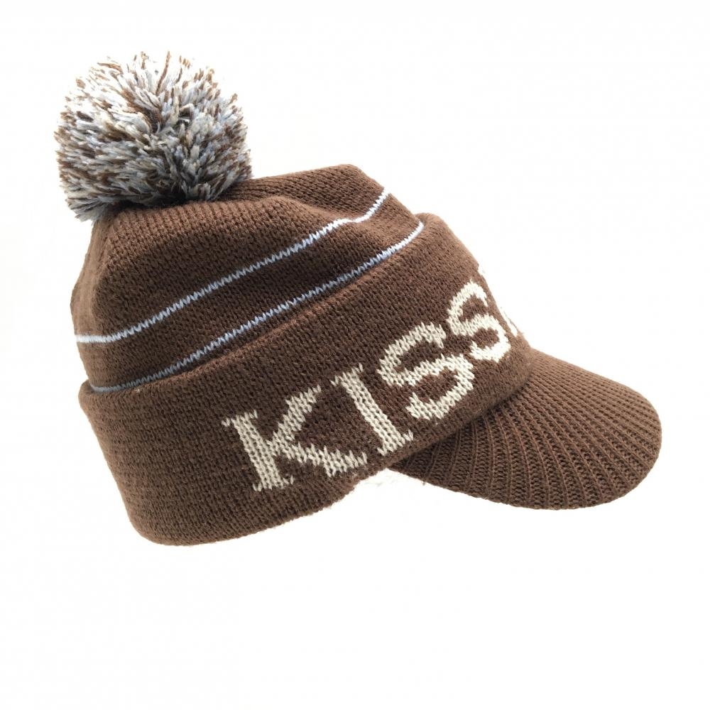 【美品】キスマーク つば付きニット帽 ブラウン×ライトブルー ロゴ ポンポン付 ウール混 FREE ゴルフウェア kissmark