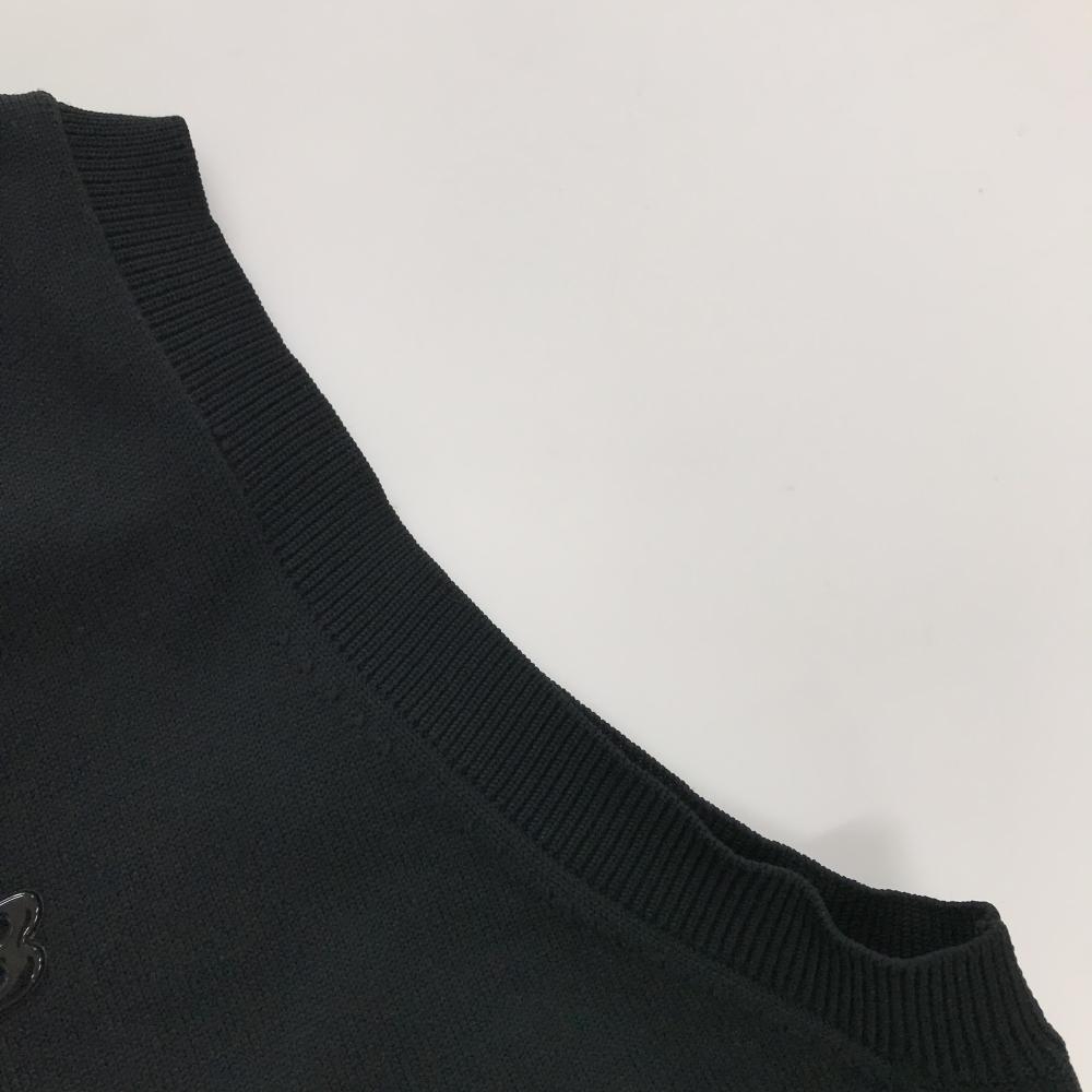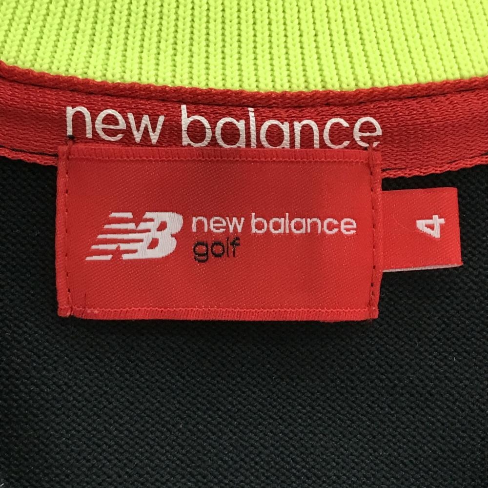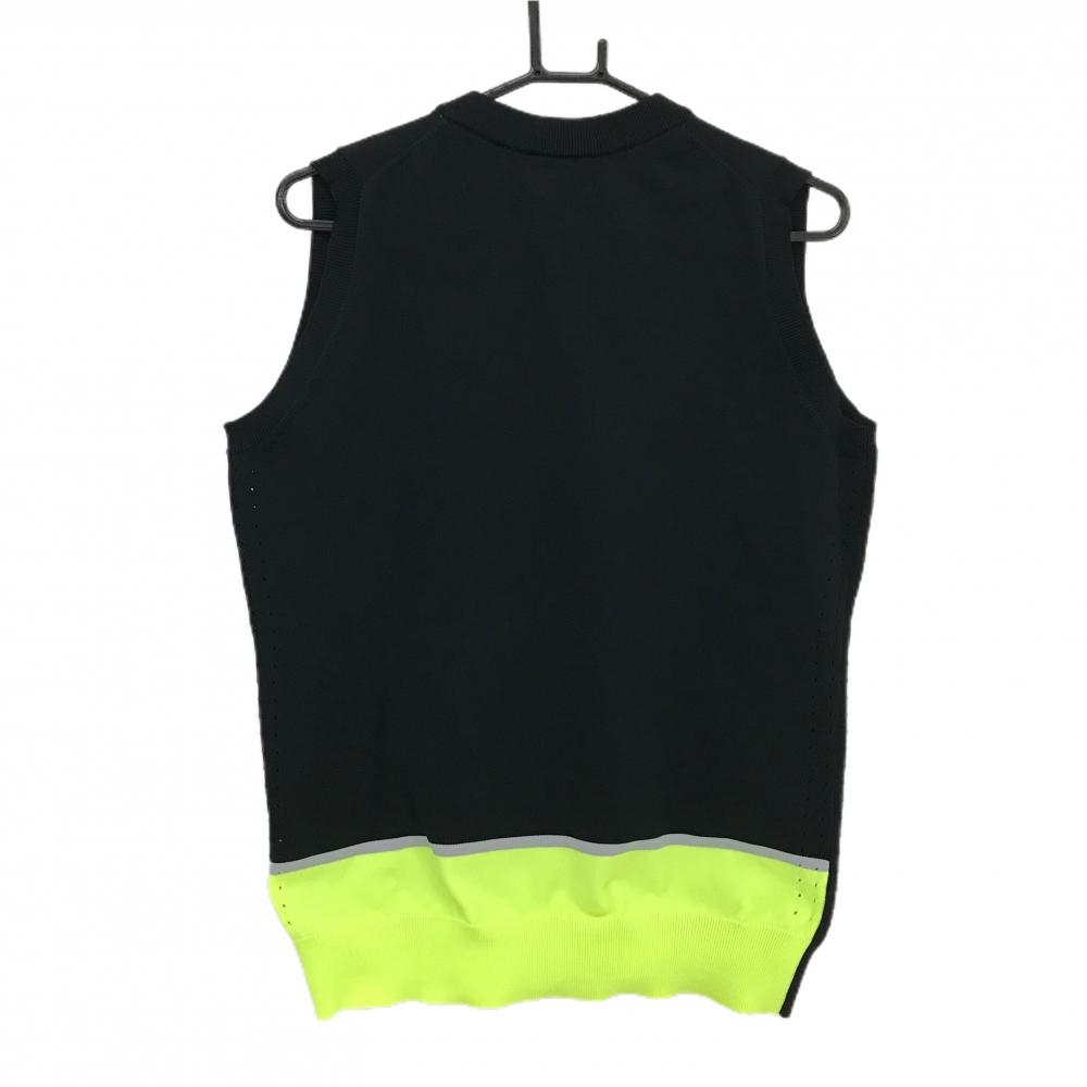 【美品】ニューバランスゴルフ ニットベスト 黒×蛍光イエロー 立体ロゴ Vネック メンズ 4(M) ゴルフウェア New Balance