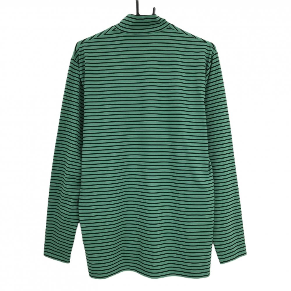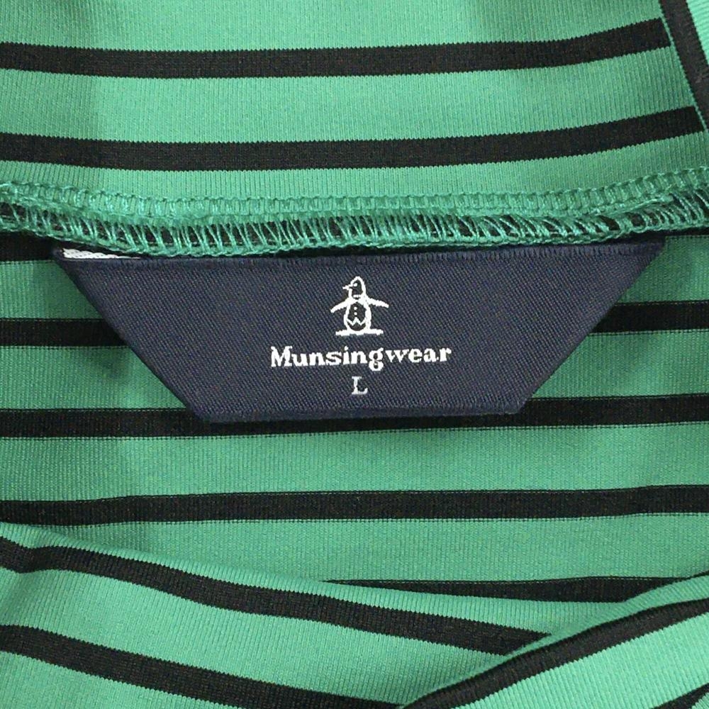 【超美品】マンシングウェア 長袖ハイネックシャツ グリーン×黒 ボーダー ロゴ メンズ L ゴルフウェア Munsingwear