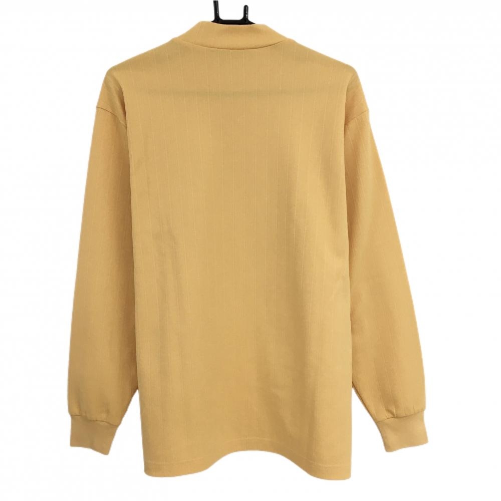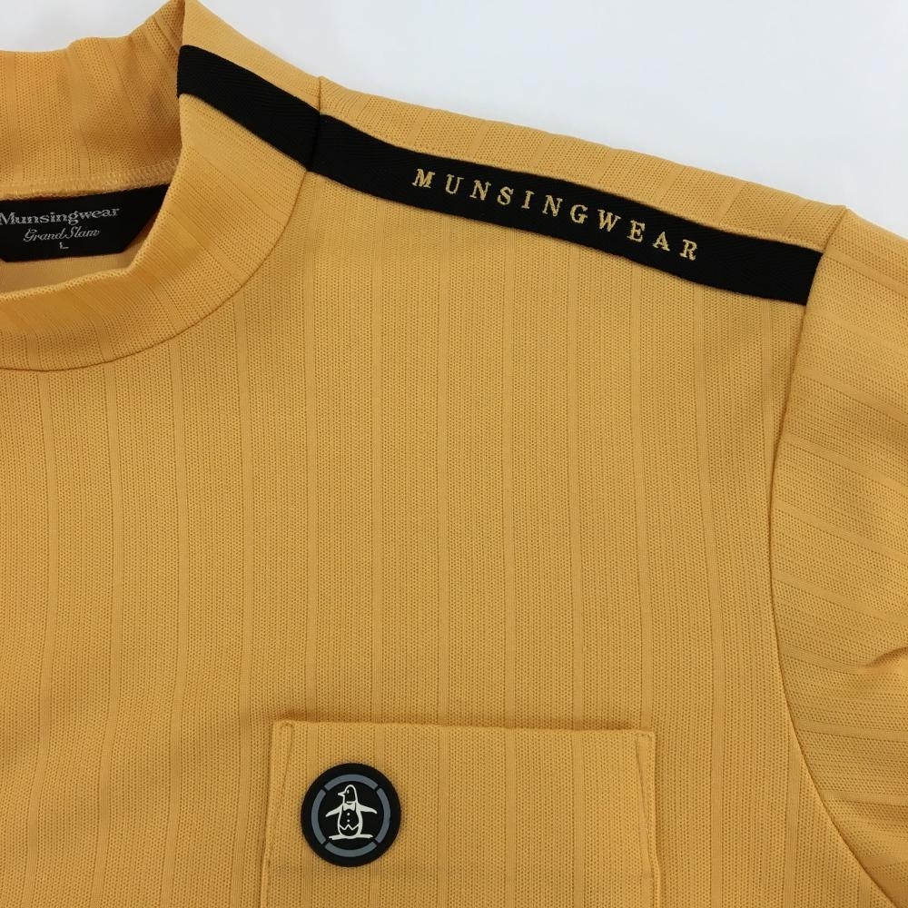 【超美品】マンシングウェア 長袖ハイネックシャツ オレンジ ストライプ地模様 胸ポケット付 メンズ L ゴルフウェア Munsingwear