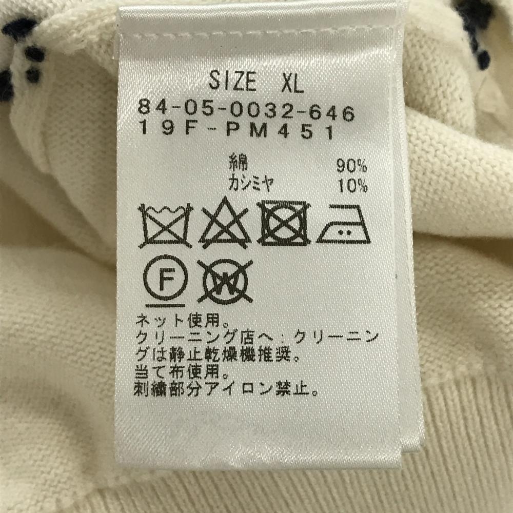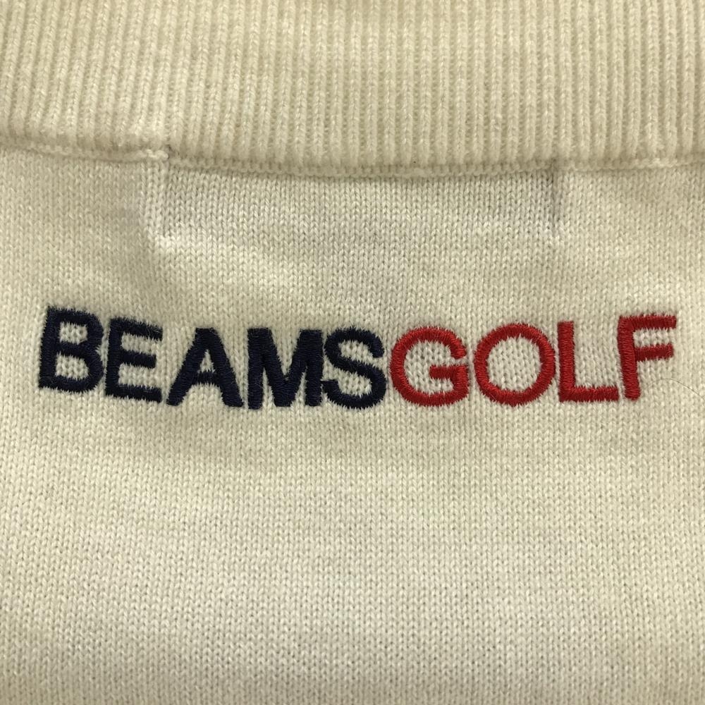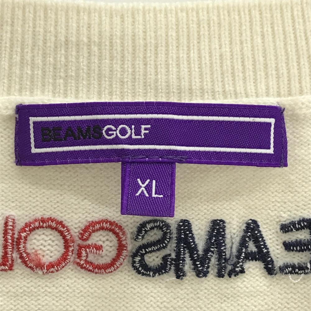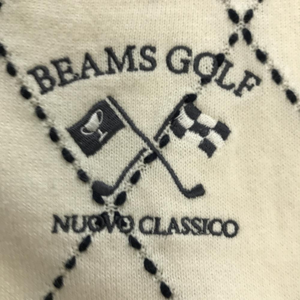 【超美品】ビームスゴルフ ニットベスト アイボリー×ダークネイビー 前面ダイヤ柄編み カシミヤ混 メンズ XL ゴルフウェア BEAMS GOLF