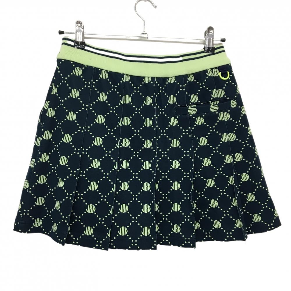 【超美品】ジャックバニー プリーツスカート ネイビー×ライトグリーン ロゴ総柄 レディース 1(M) ゴルフウェア 2025年モデル Jack Bunny