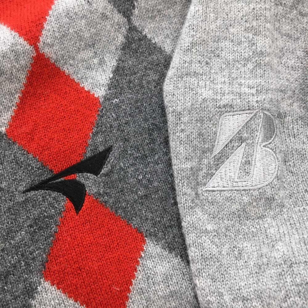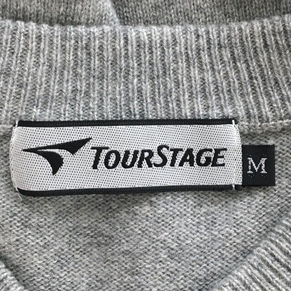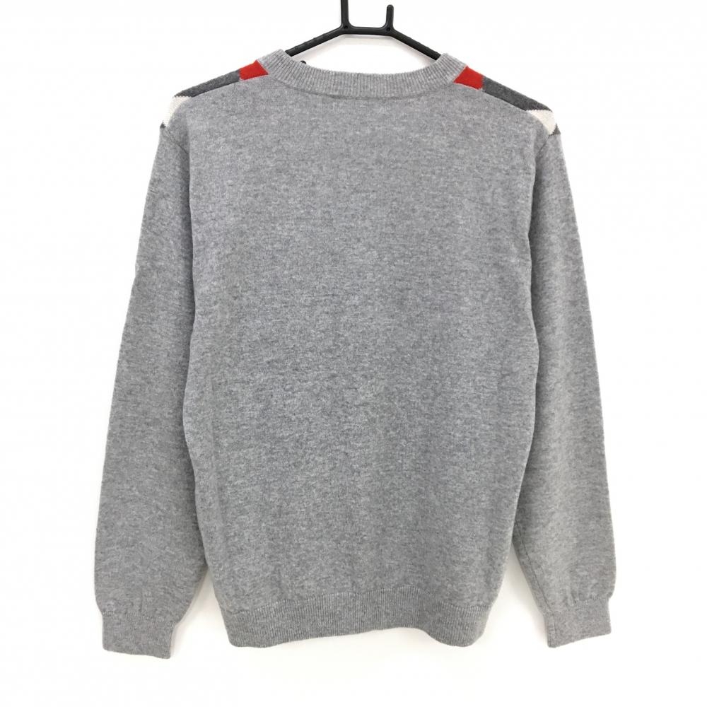 【美品】ツアーステージ セーター グレー×レッド アーガイル調 カシミヤ100% ニット メンズ M ゴルフウェア TOURSTAGE